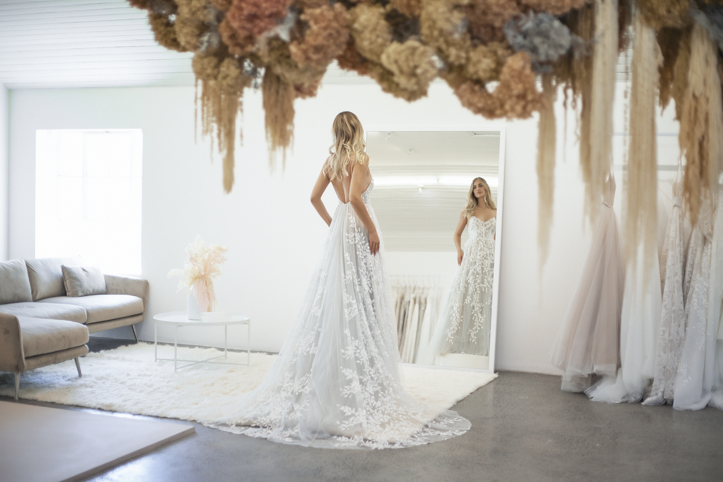 The boutique operates by appointment from Monday-Saturday. Our appointments are 90 minutes long to allow each bride the full Vagabond experience, complete with bubbles and a large sitting area for your bridal army!