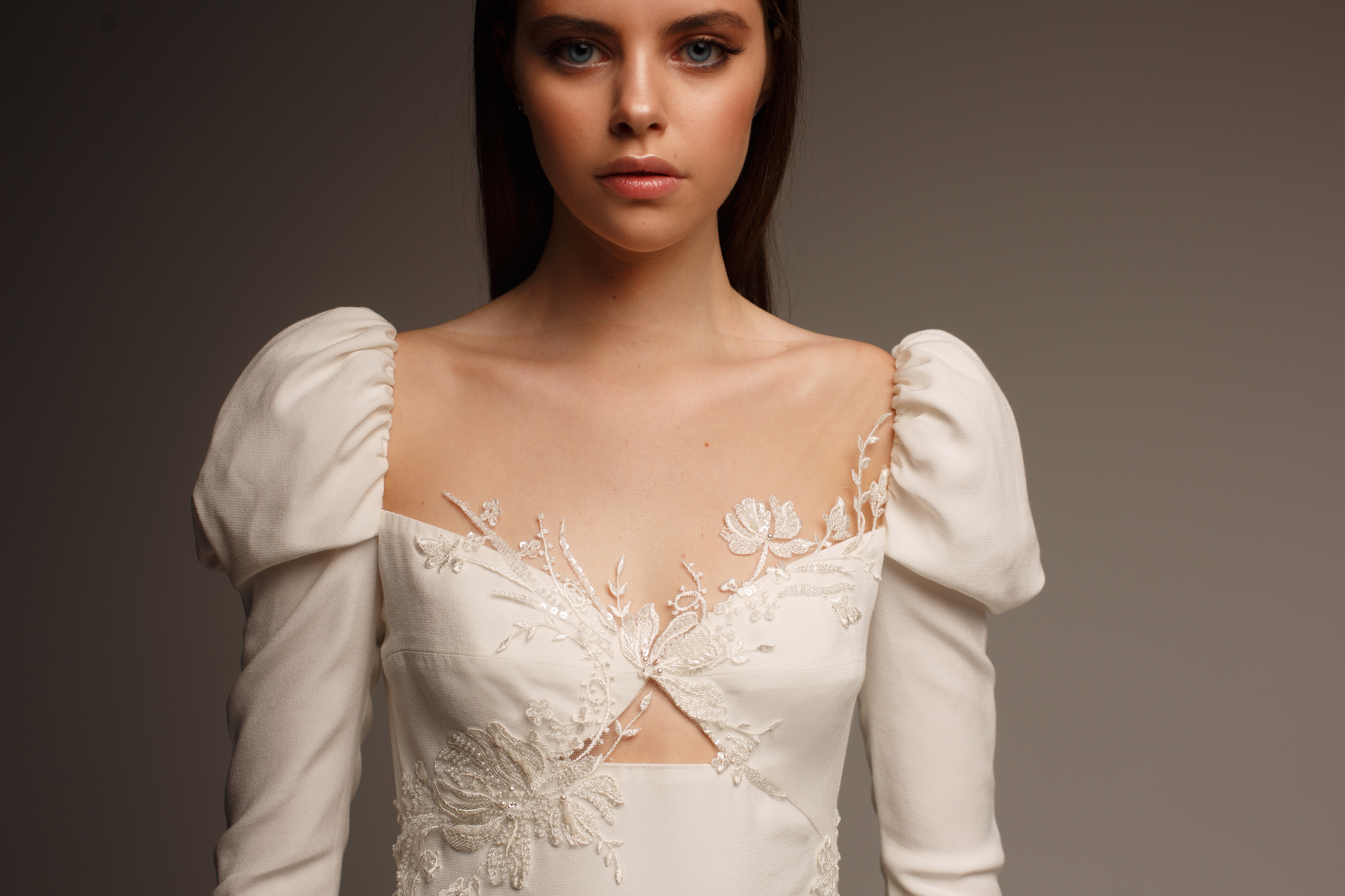 The New Femininity collection is about finding romance in modern silhouettes and styles. The details of each gown add surprising twists on tradition, from structural support in an otherwise minimalist gown, to oversized puff sleeves.