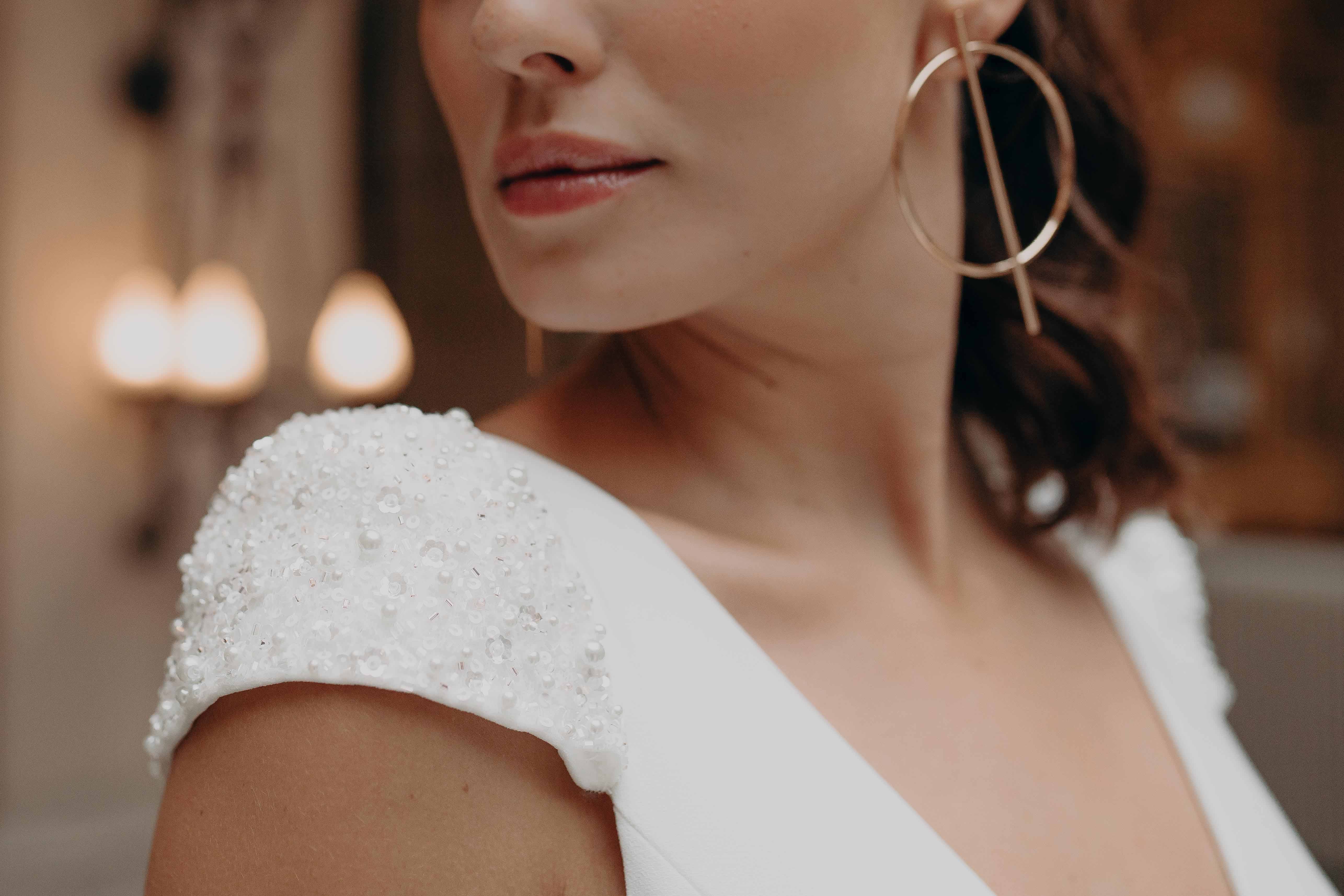 The Orchid gown elegance in simplicity. Made with a soft matte crepe, this figure-hugging dress provides a sophisticated silhouette that has the option of crepe cap sleeves or hand-beaded cap sleeves and belt for a more dramatic detail.