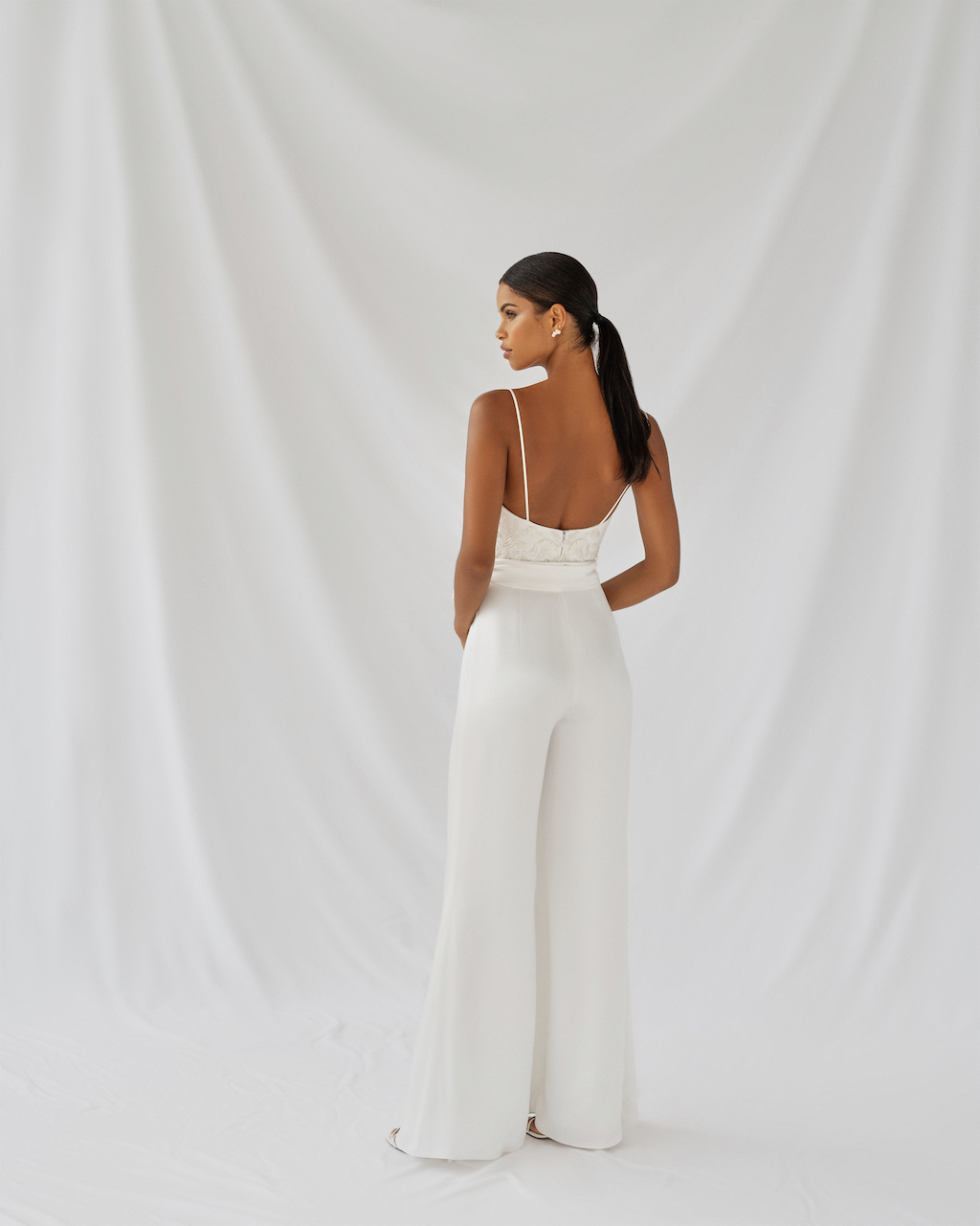 TROUSERS SILK SATIN OFF WHITE CREPE CIVIL CEREMONY PARTY RELAXED