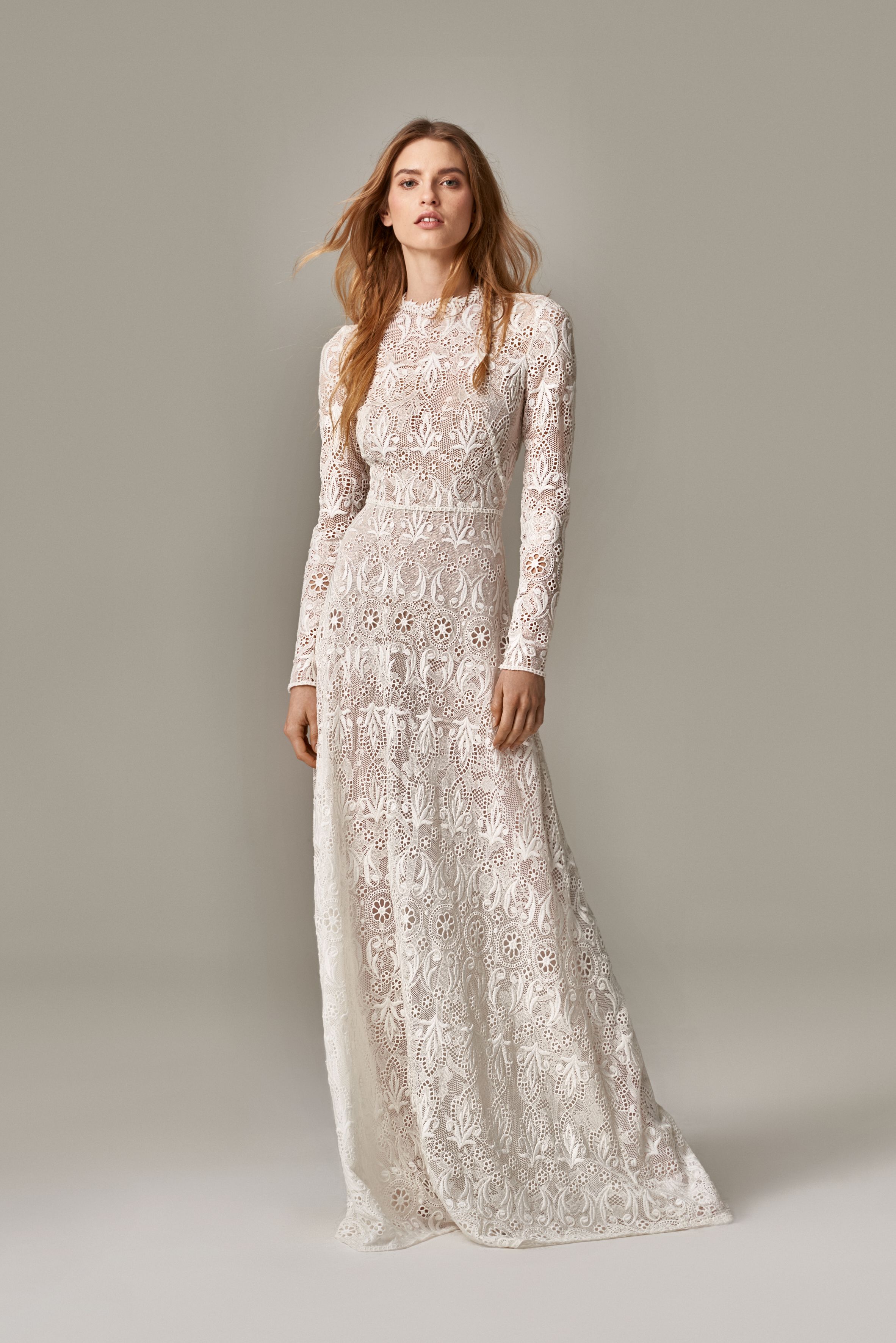 DRESS HIGH-NECK LONG SLEEVES A-LINE