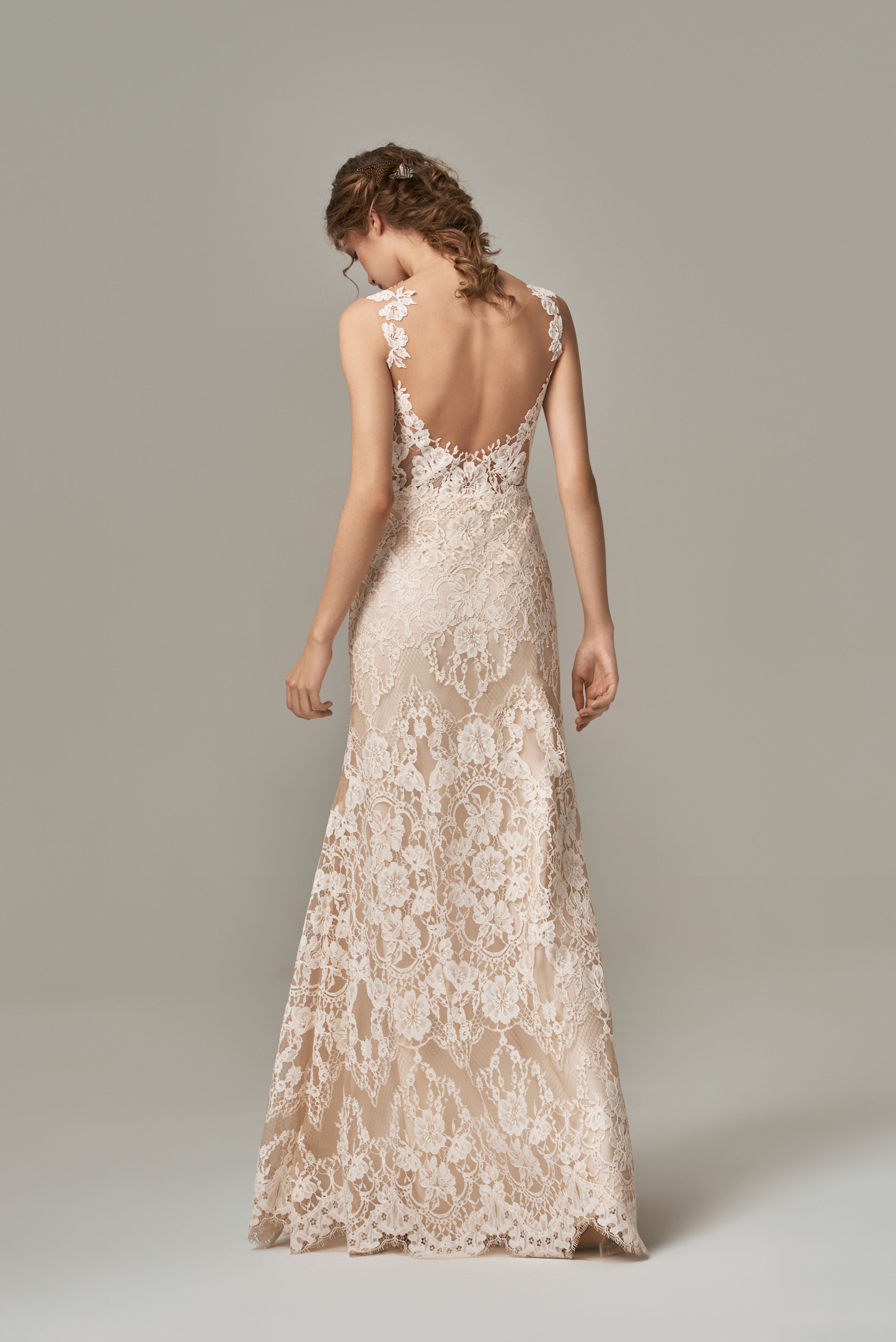 DRESS V-NECK BACKLESS LACE CHAMPAGNE