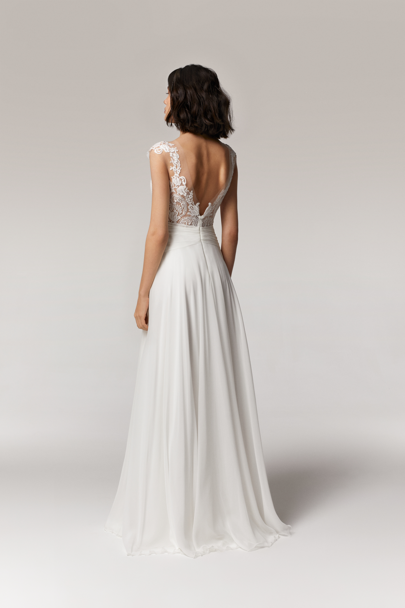 DRESS A-LINE LACE SILK OFF WHITE RELAXED COMFORT CAP/HALF SLEEVE