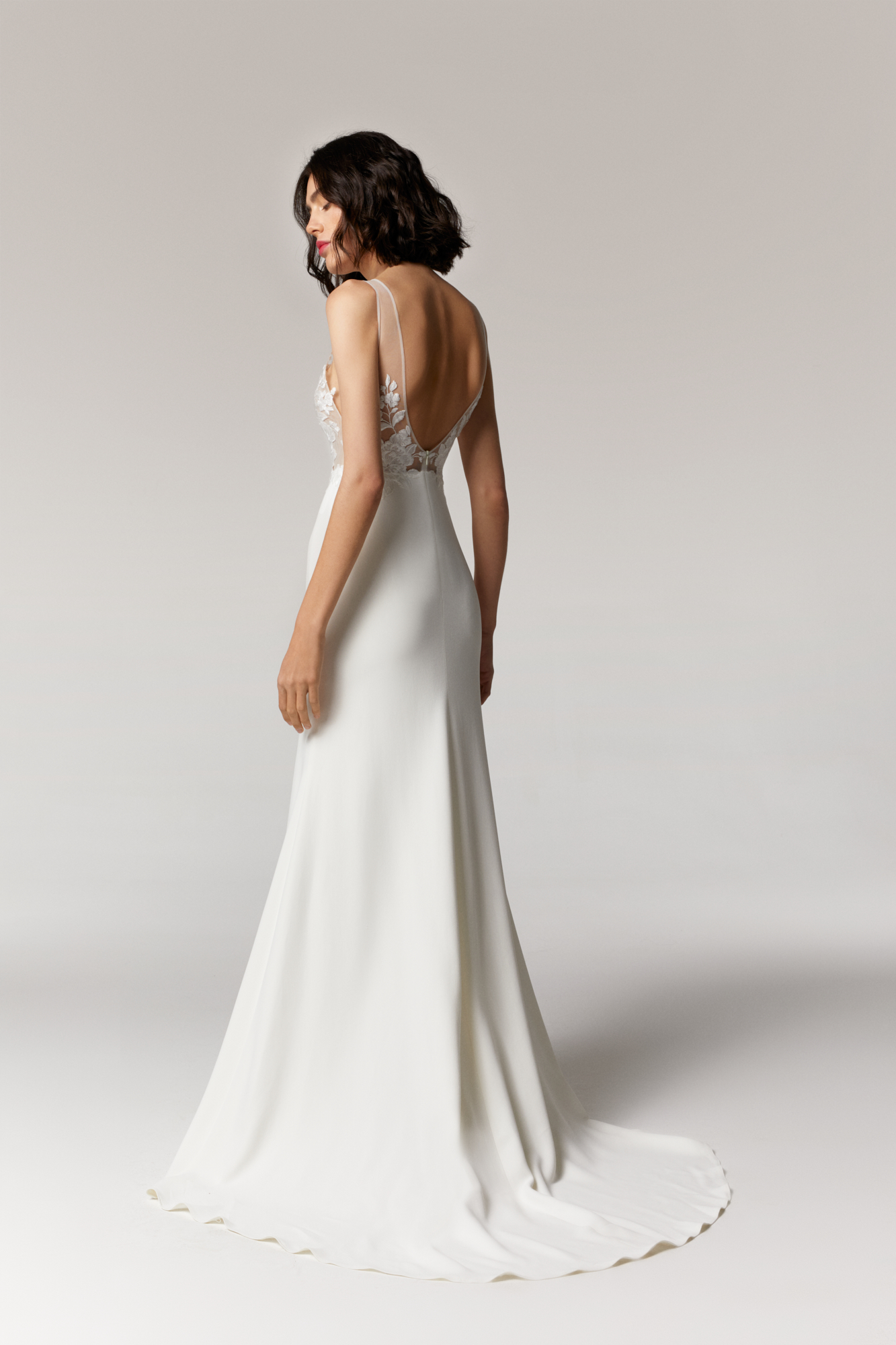DRESS V-NECK EMBELLISHMENT LACE WHITE EMBROIDERED CREPE BACKLESS CIVIL CEREMONY PARTY RELAXED MINIMAL COMFORT VISCOSE