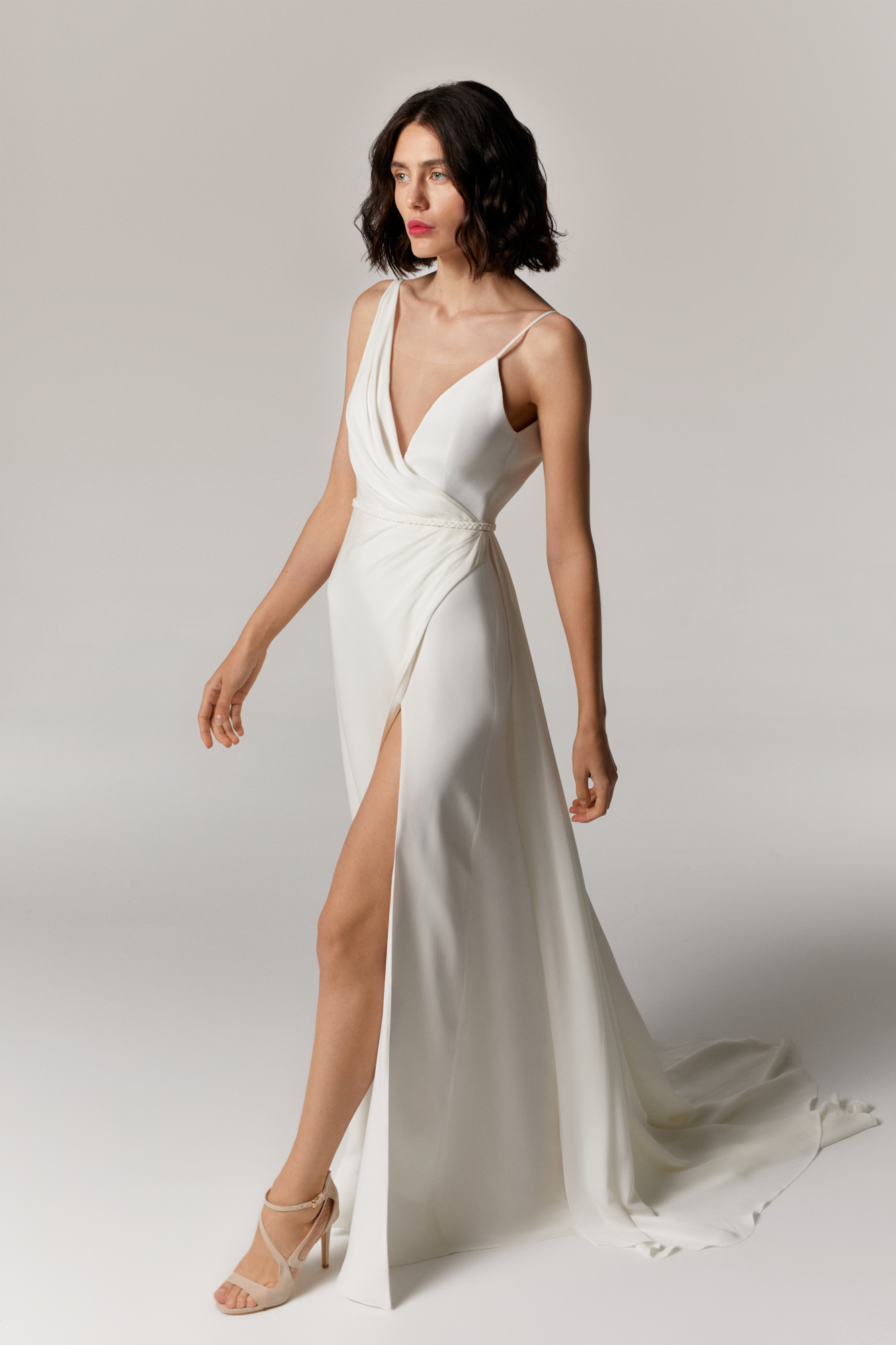 DRESS ONE SHOULDER SILK IVORY CREPE CIVIL CEREMONY PARTY RELAXED MINIMAL COMFORT
