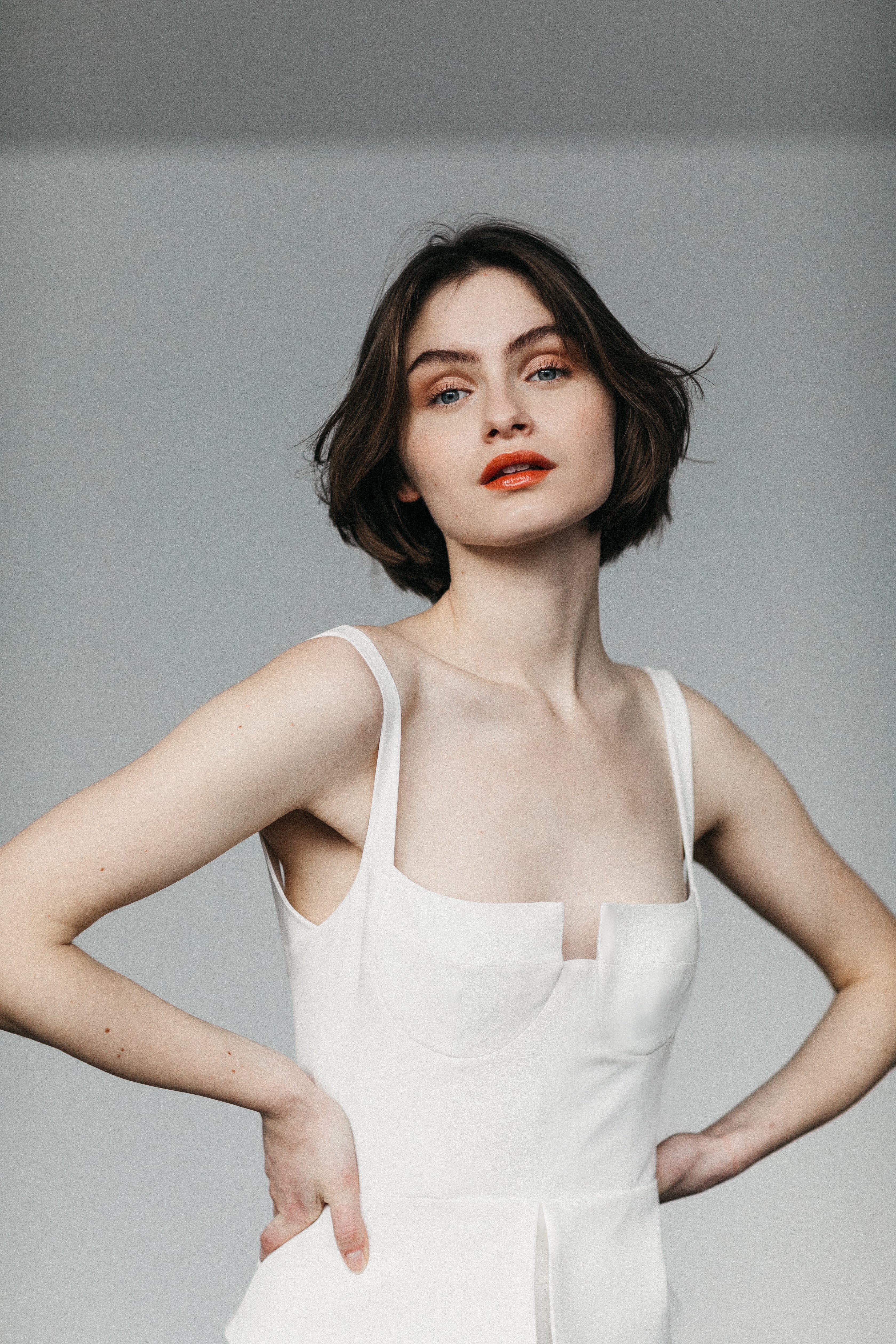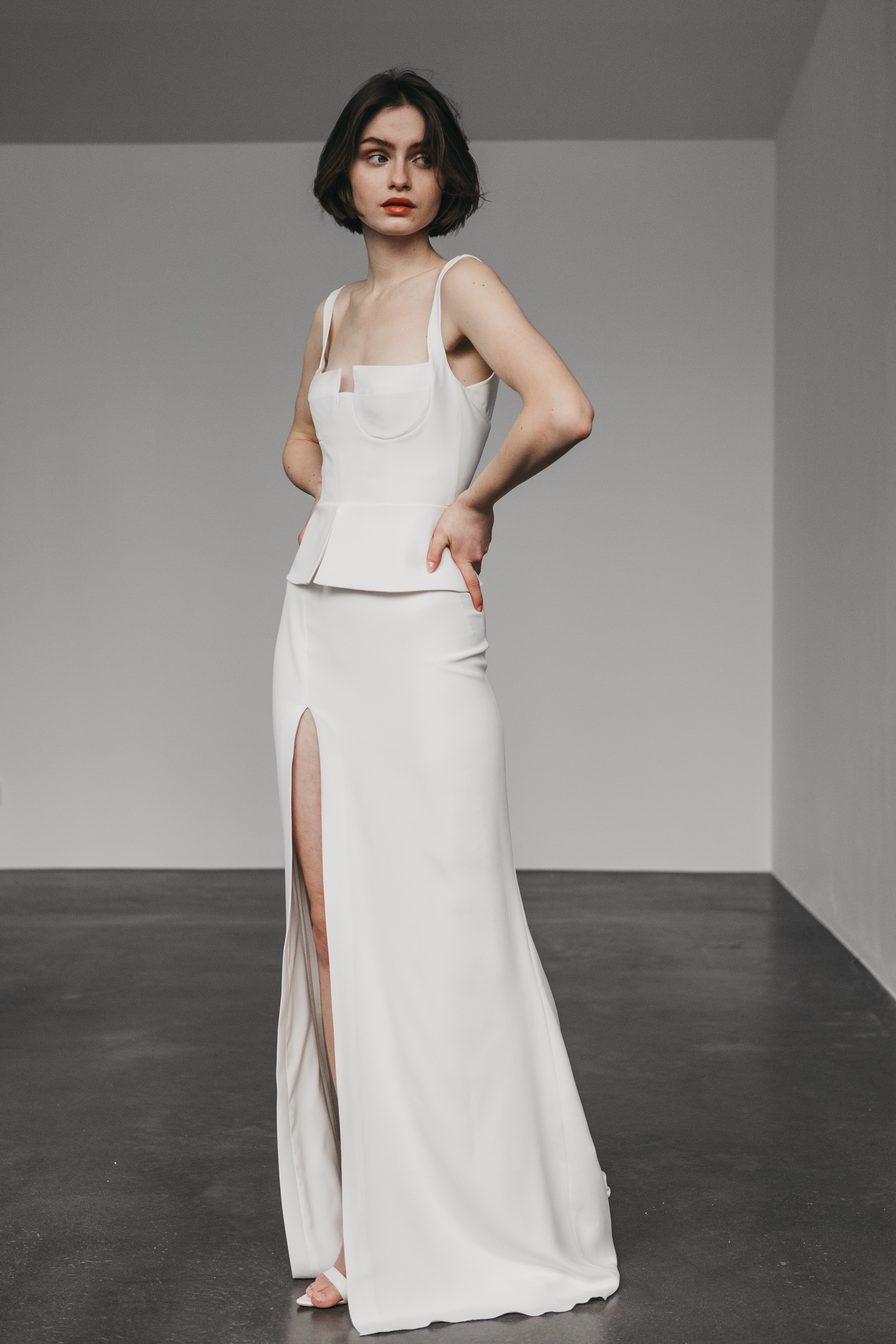 DRESS FITTED BACKLESS PARTY TOP SKIRT SILK OFF WHITE MINIMAL
