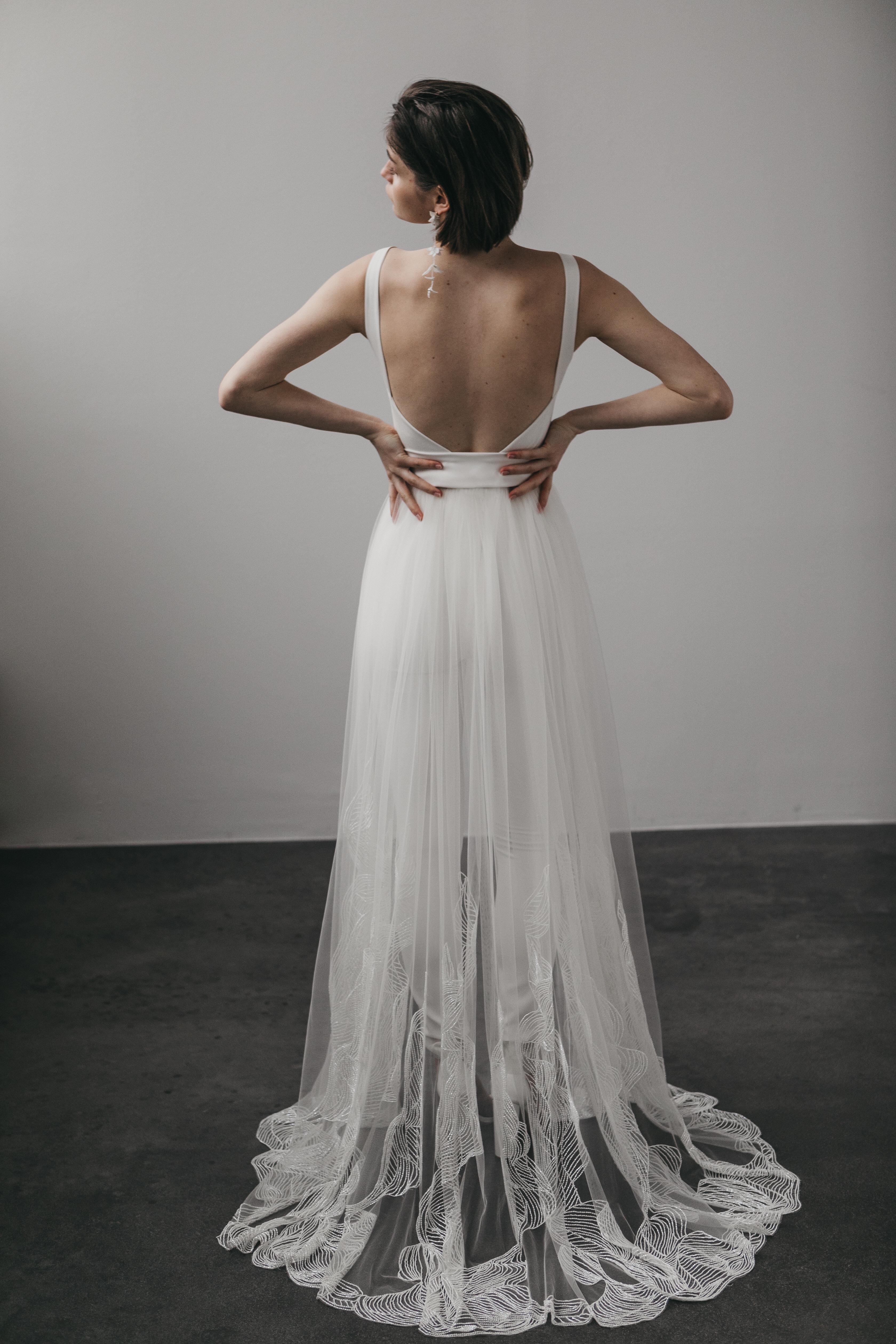 JUMPSUIT A-LINE OVER-SKIRT/DRESS BACKLESS PARTY SKIRT TWO PIECE TROUSERS TULLE SILK OFF WHITE EMBROIDERED CIVIL CEREMONY