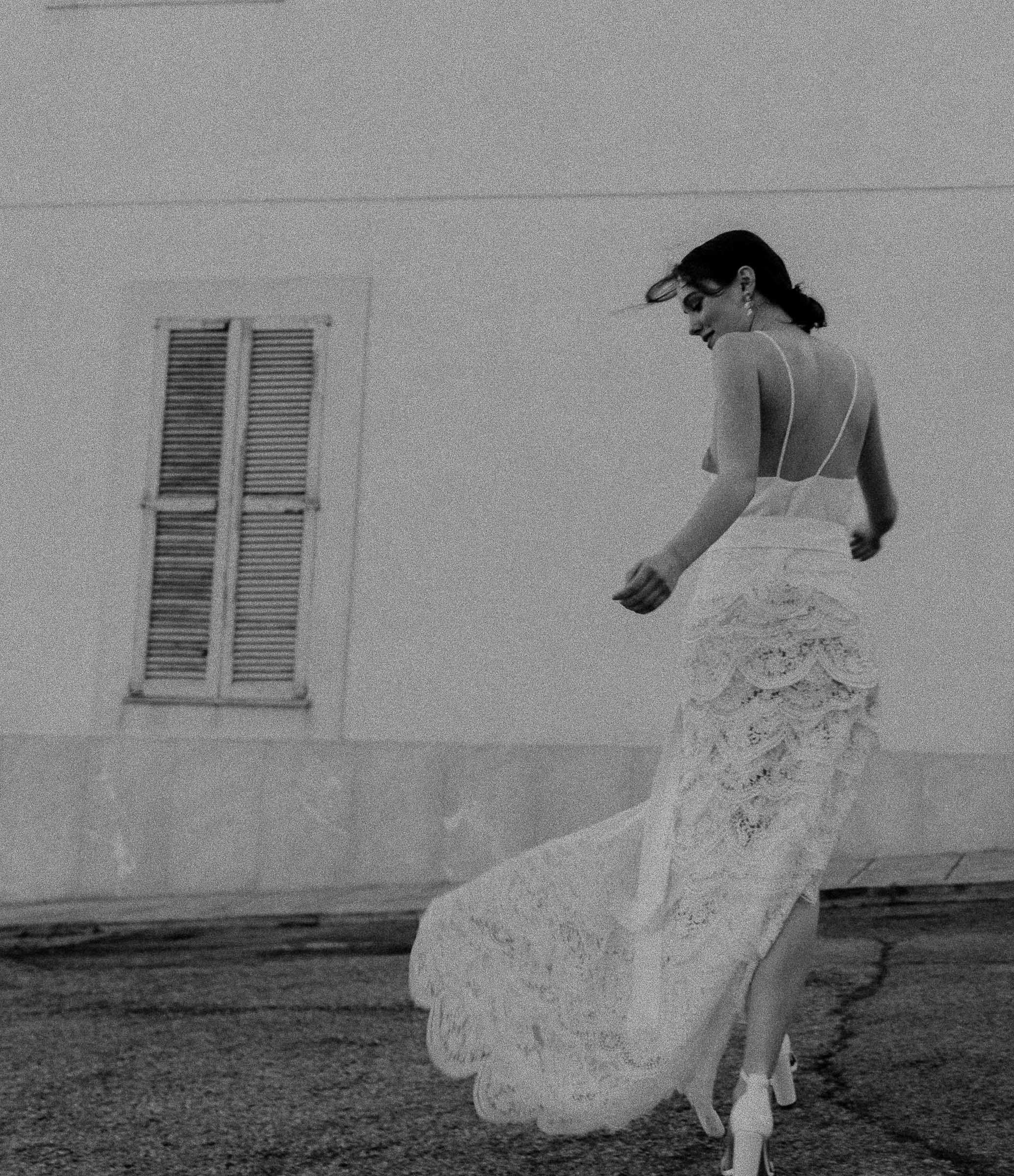 TOP SKIRT TWO PIECE LACE SATIN IVORY PARTY