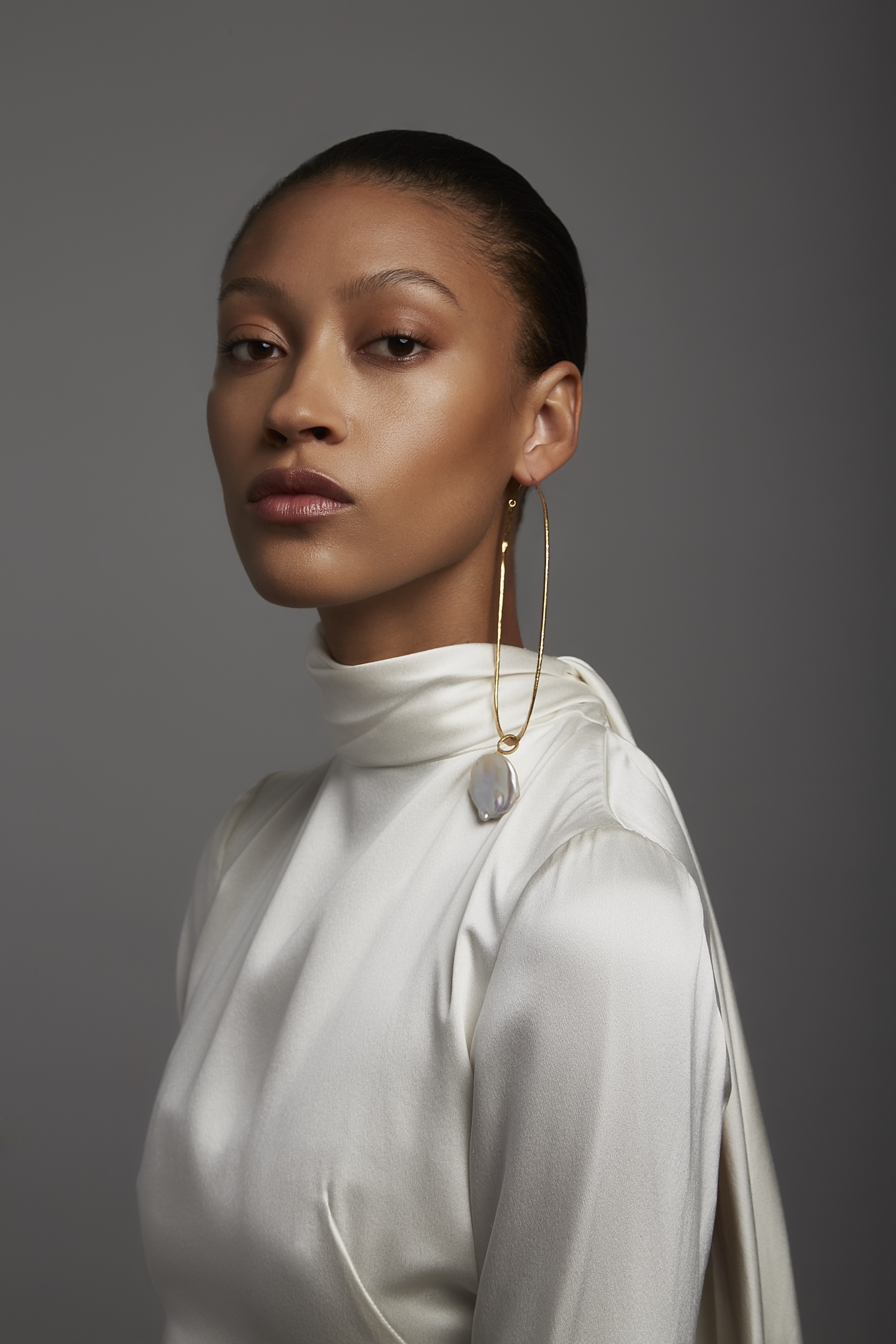 TOPTWO PIECEHIGH-NECKBACKLESSLONG SLEEVESSILKSATINWHITEIVORYOFF WHITEFITTEDAVAILABLE IN CURVE