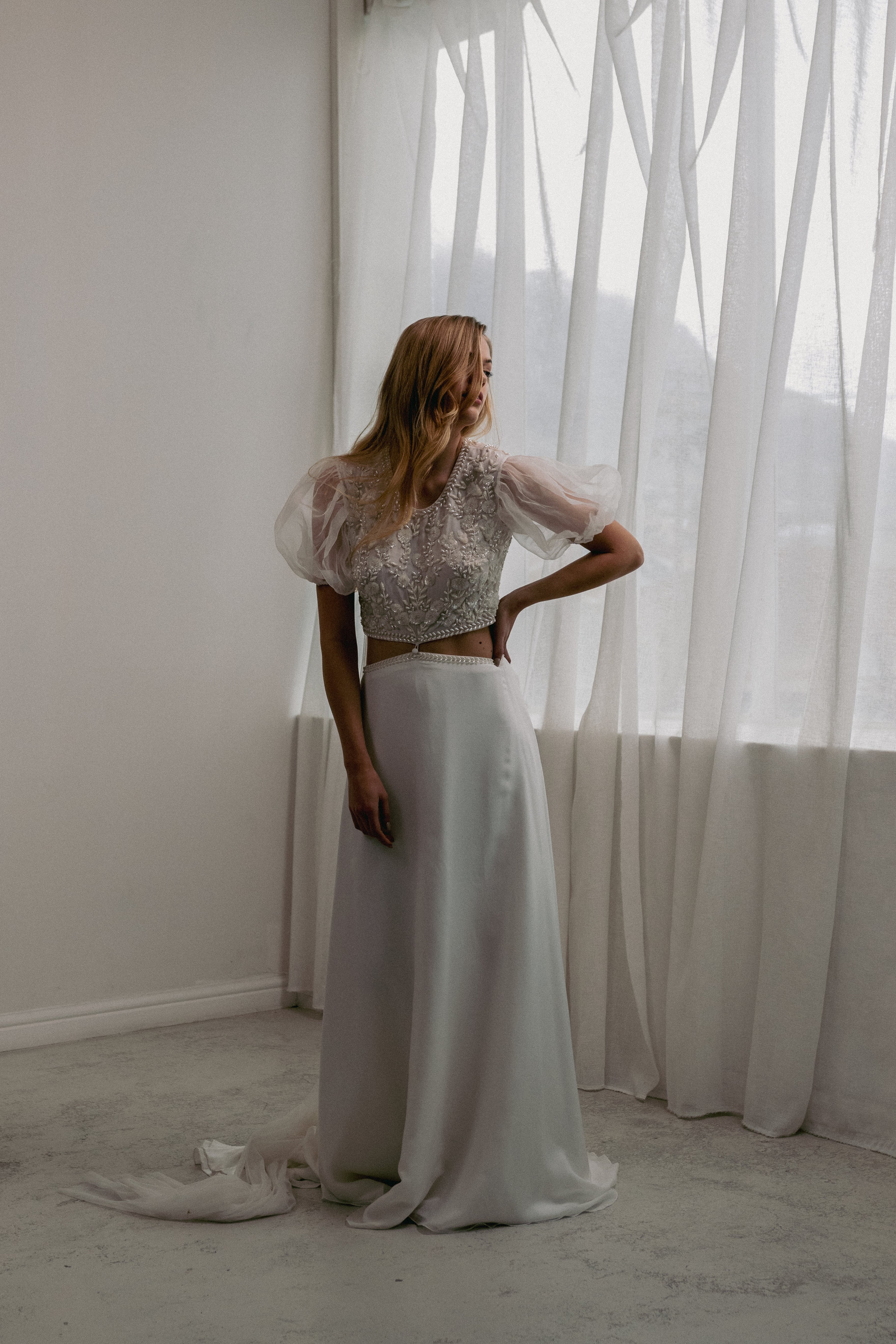 TWO PIECEA-LINEBOHOHIGH-NECKSCOOP NECKEMBELLISHMENTSILKCHIFFONSATINIVORYOFF WHITEEMBROIDEREDPARTYRELAXEDTRAINCOMFORTCAP/HALF SLEEVE