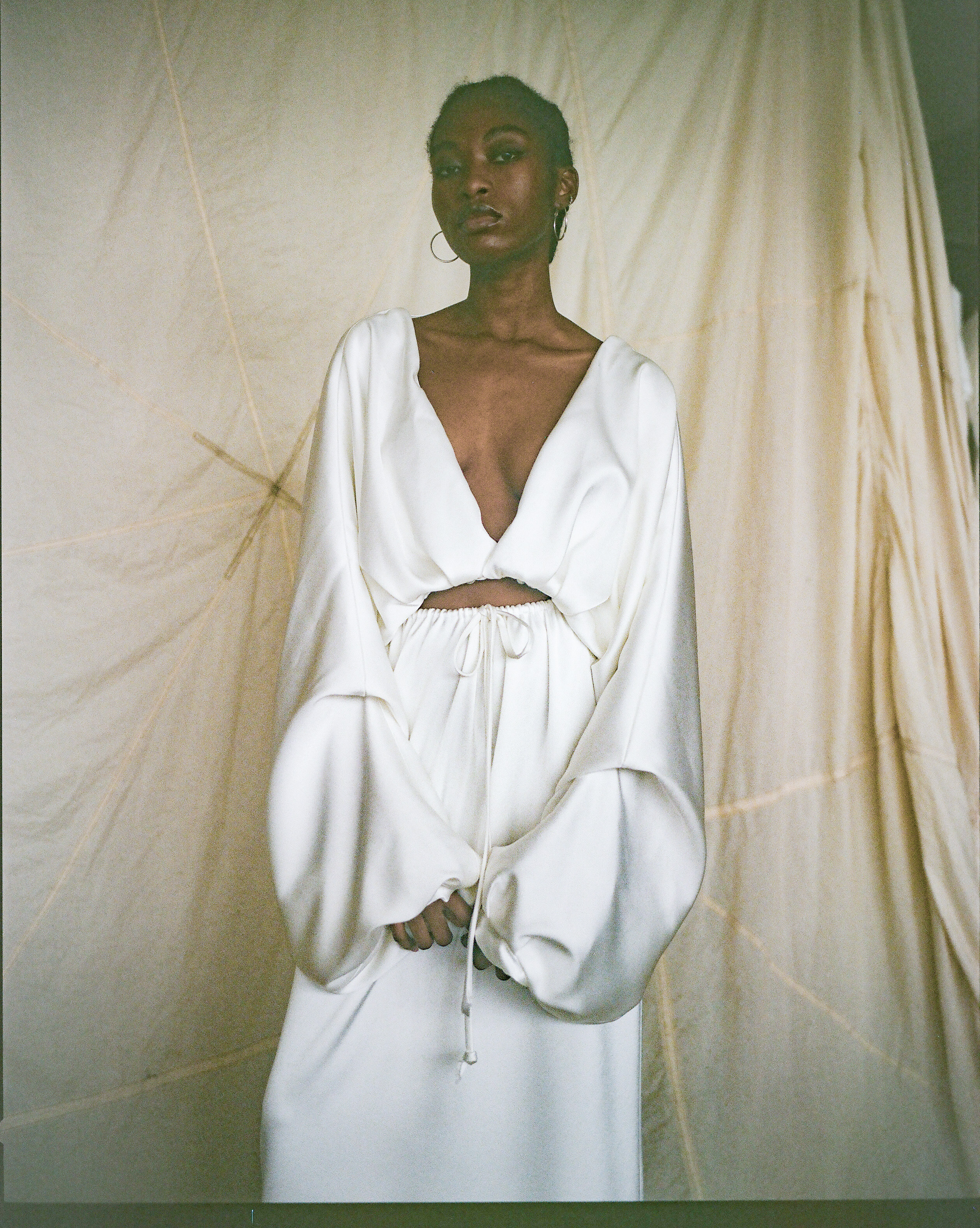 This stunning 2 x piece is made in our new heavy weight satin fabric. The open back top drapes beautifully and looks stunning with most of our separate pieces. The opening at the font has multiple fastening options so you can have it as open or closed as you wish. We also have this feature on the cuff so you can have the sleeve loose or tight at the wrist. T