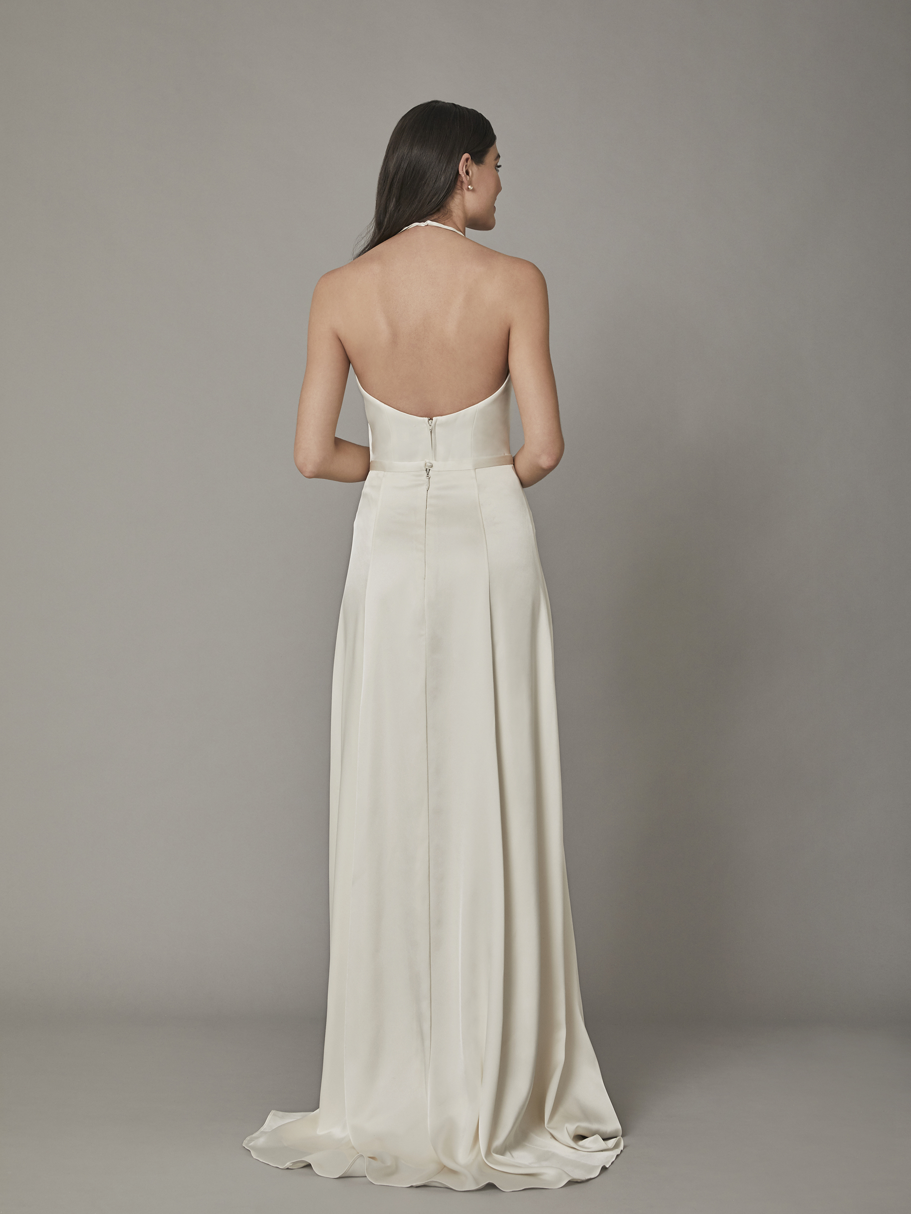 Simple but chic, the form-fitting Riva top is the perfect ode to minimalism. Crafted with barely-there neckties, and low scooped back, the fitted satin creates a polished contemporary bridal separates look with ease.