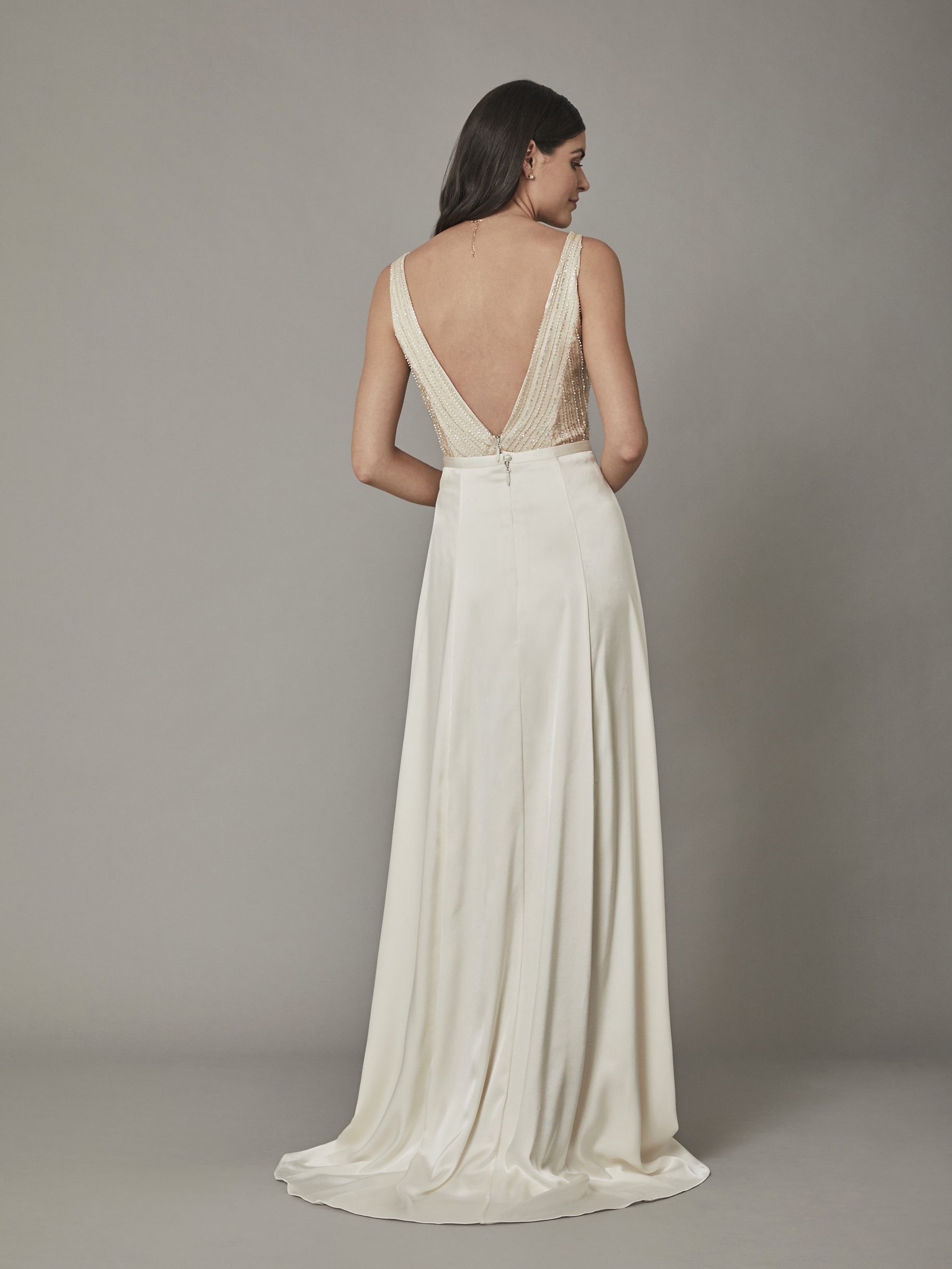 Add a touch of glamour and elegance to your bridal separates look. Crafted with an intricately beaded bodice, flattering V neckline, the Riya bodice personifies charismatic charm. Style with any separate to create a range of looks from classic to modern.