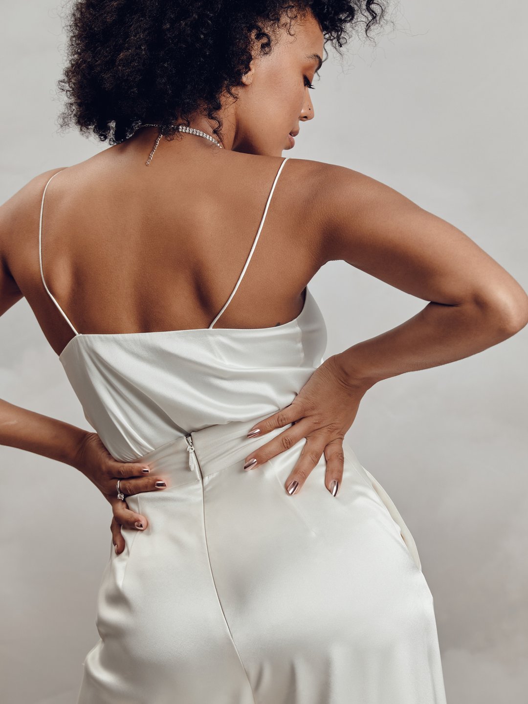 Versatile yet timeless, with a breath of modernity that every unique bride will want to start her bridal journey with the Mia camisole. Style with either romantic chiffon, silk tulle or 1920's inspired satin skirts, combined with a treasure trove of accessories and jewels to make the Mia camisole an individual and inspired bridal look.
