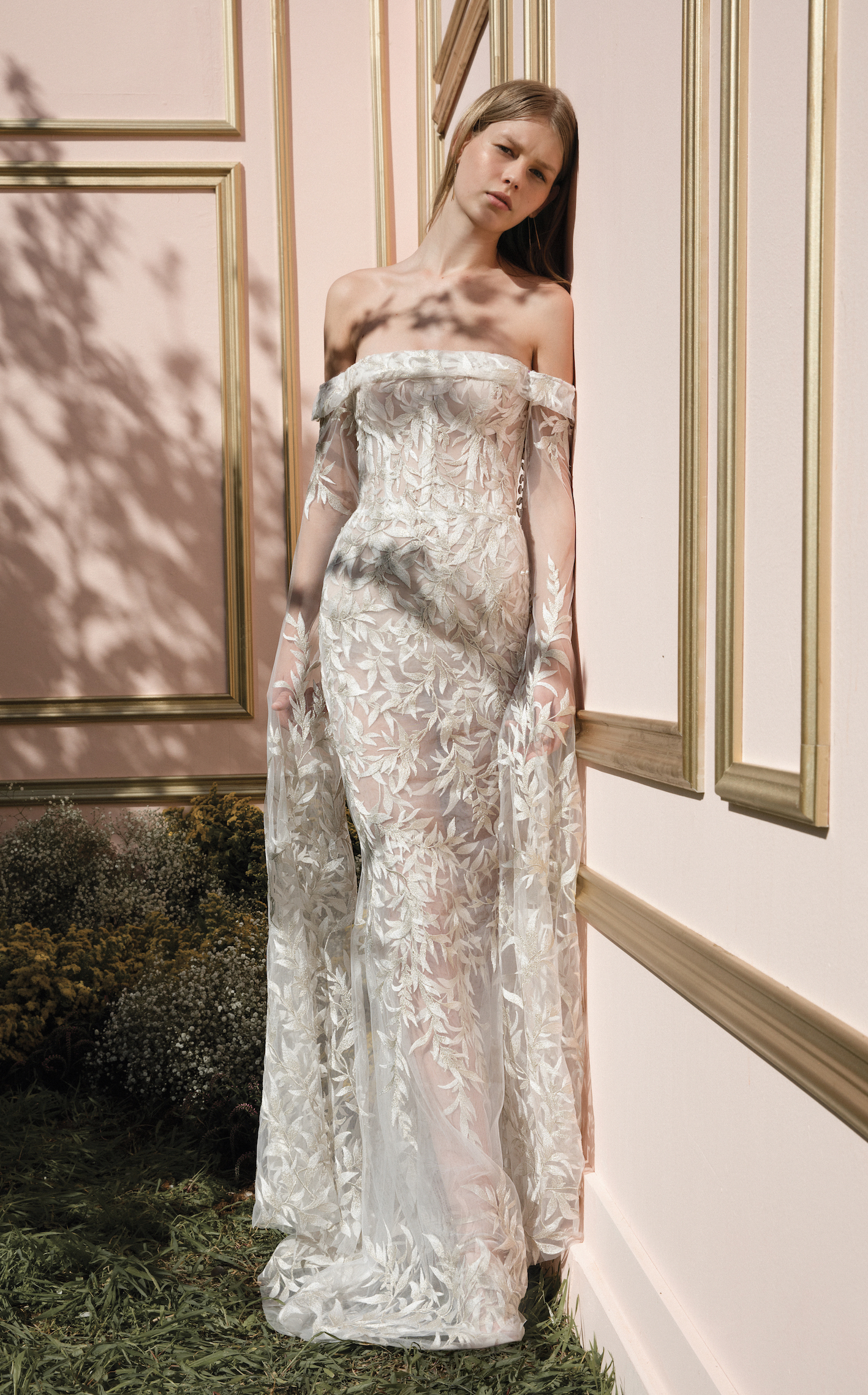 DRESS OFF-THE-SHOULDER LONG SLEEVES JULIETTE SLEEVE EMBELLISHMENT FITTED