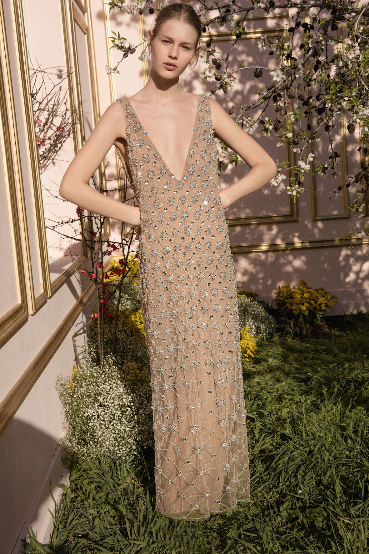 DRESS V-NECK COLOUR - OTHER EMBELLISHMENT EMBROIDERED