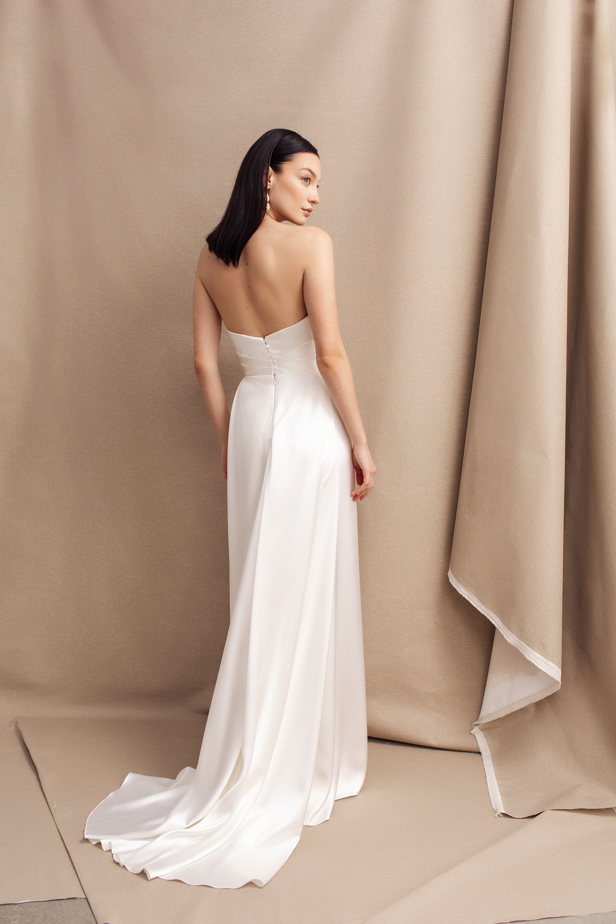 DRESS SCOOP NECK STRAPLESS SILK IVORY FITTED MINIMAL BONED