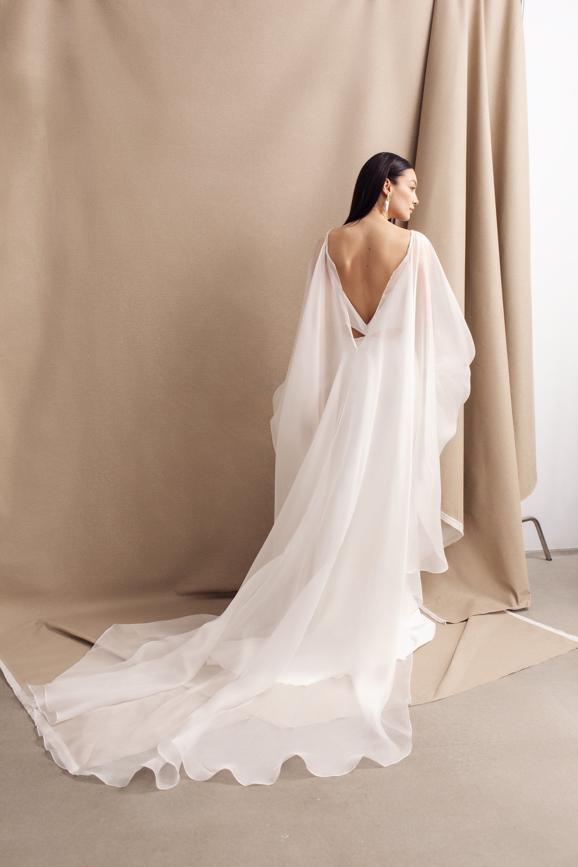 DRESSHIGH-NECKEMBELLISHMENTORGANZAIVORYCREPEFITTEDPARTYMINIMALVOLUMECOMFORTLOW BACK