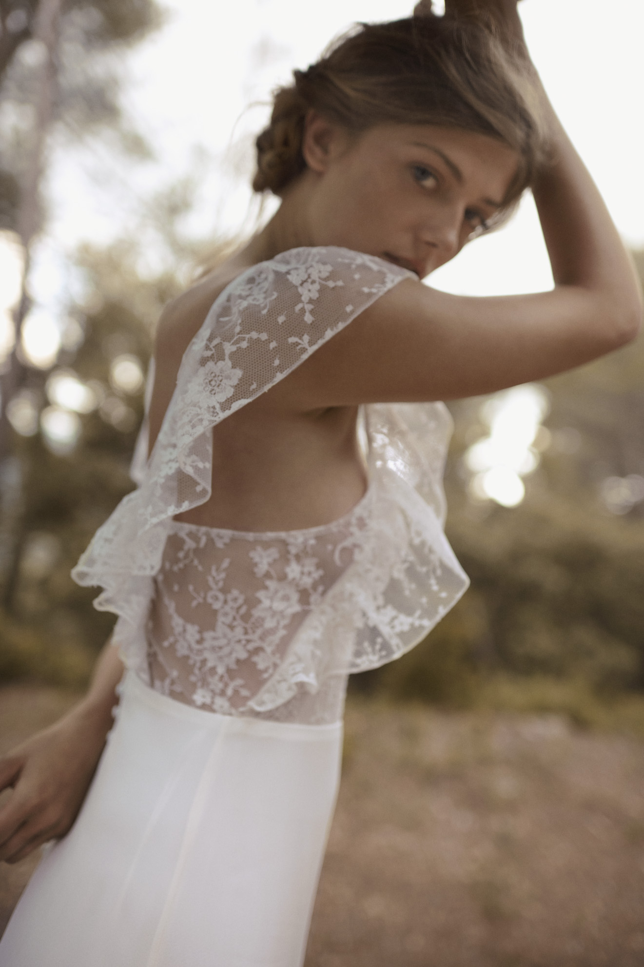 French Calais lace and silk wedding gown.