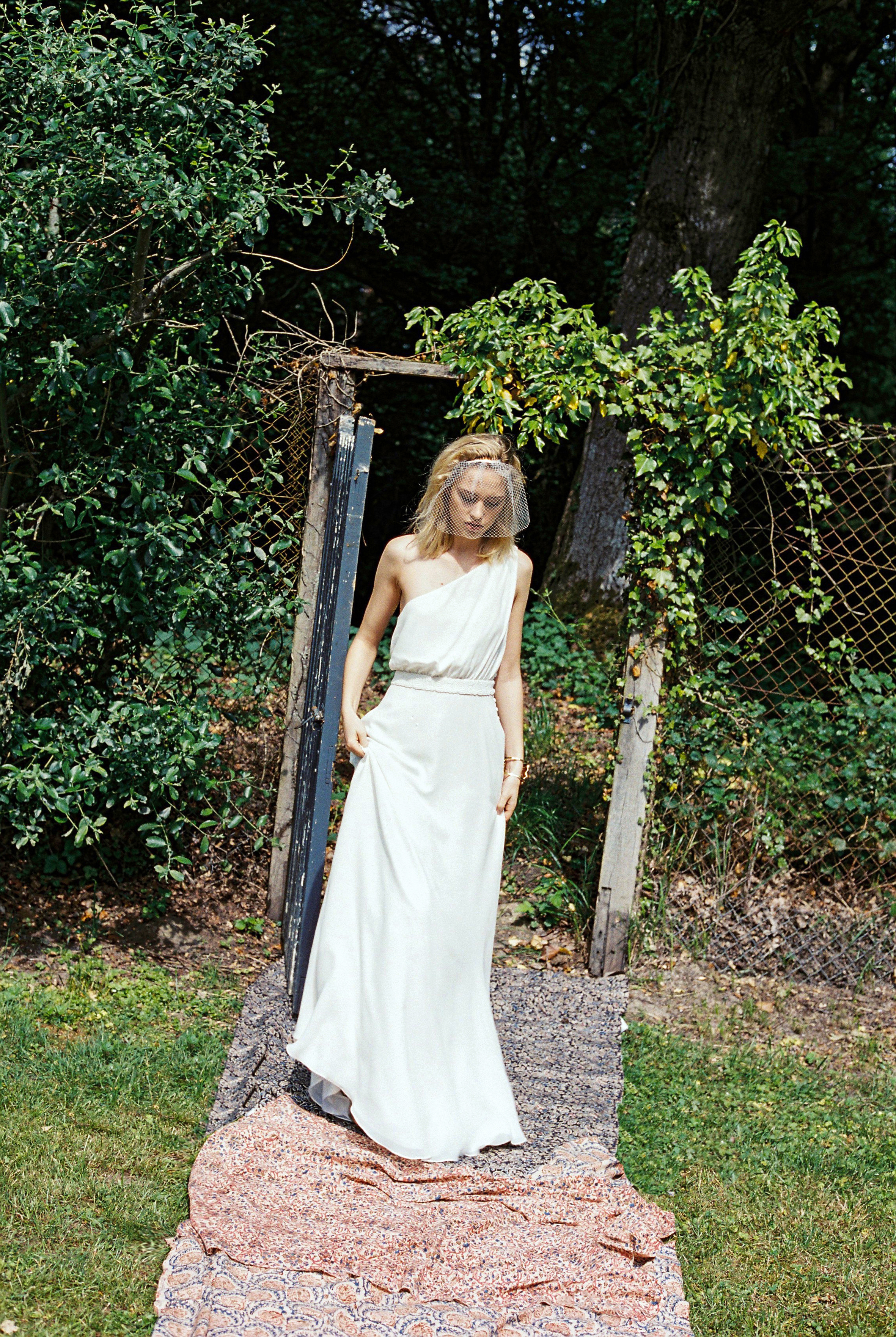 DRESS ONE SHOULDER LACE SILK OFF WHITE