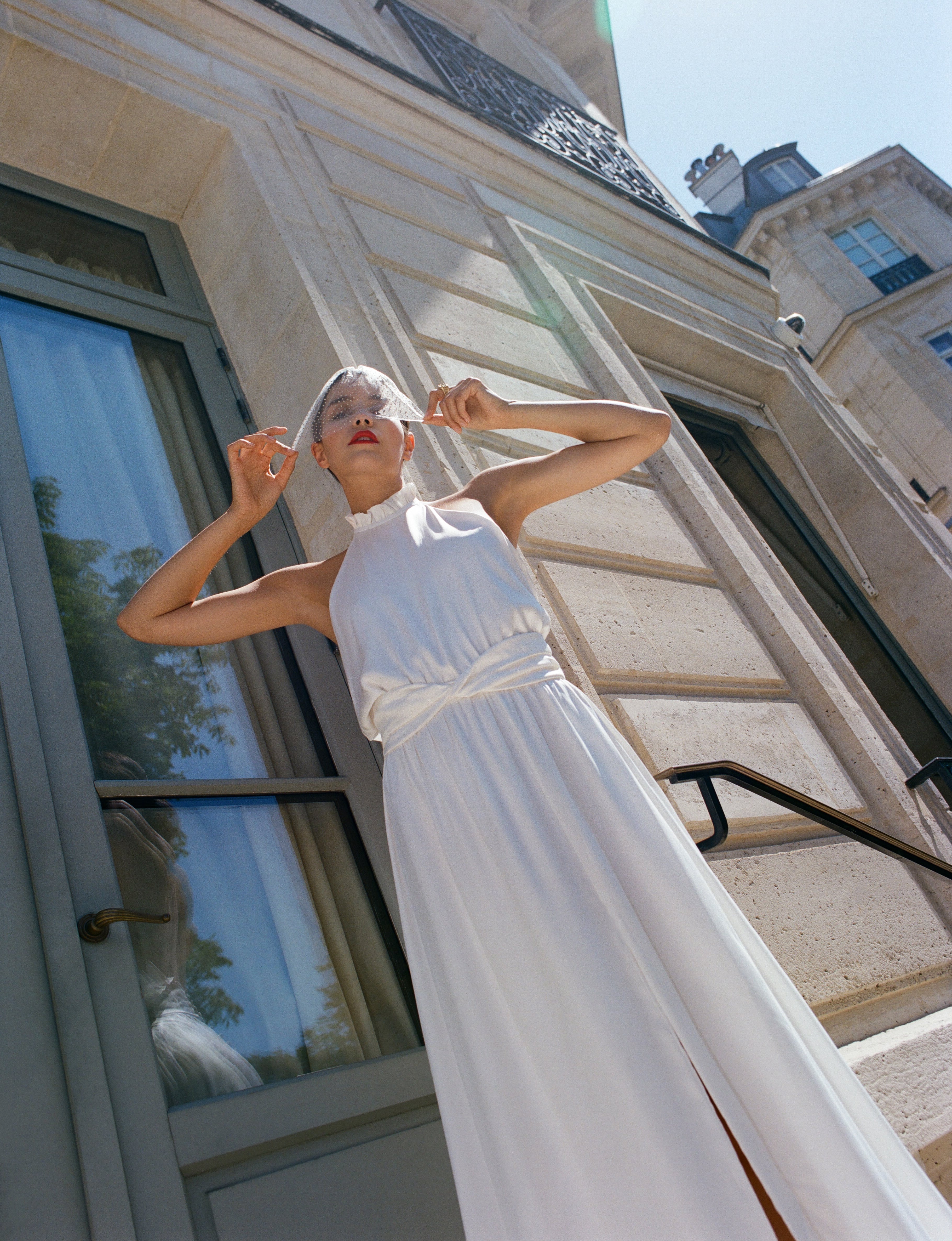 DRESSHALTERSILKSATINOFF WHITEBACKLESSTRAIN