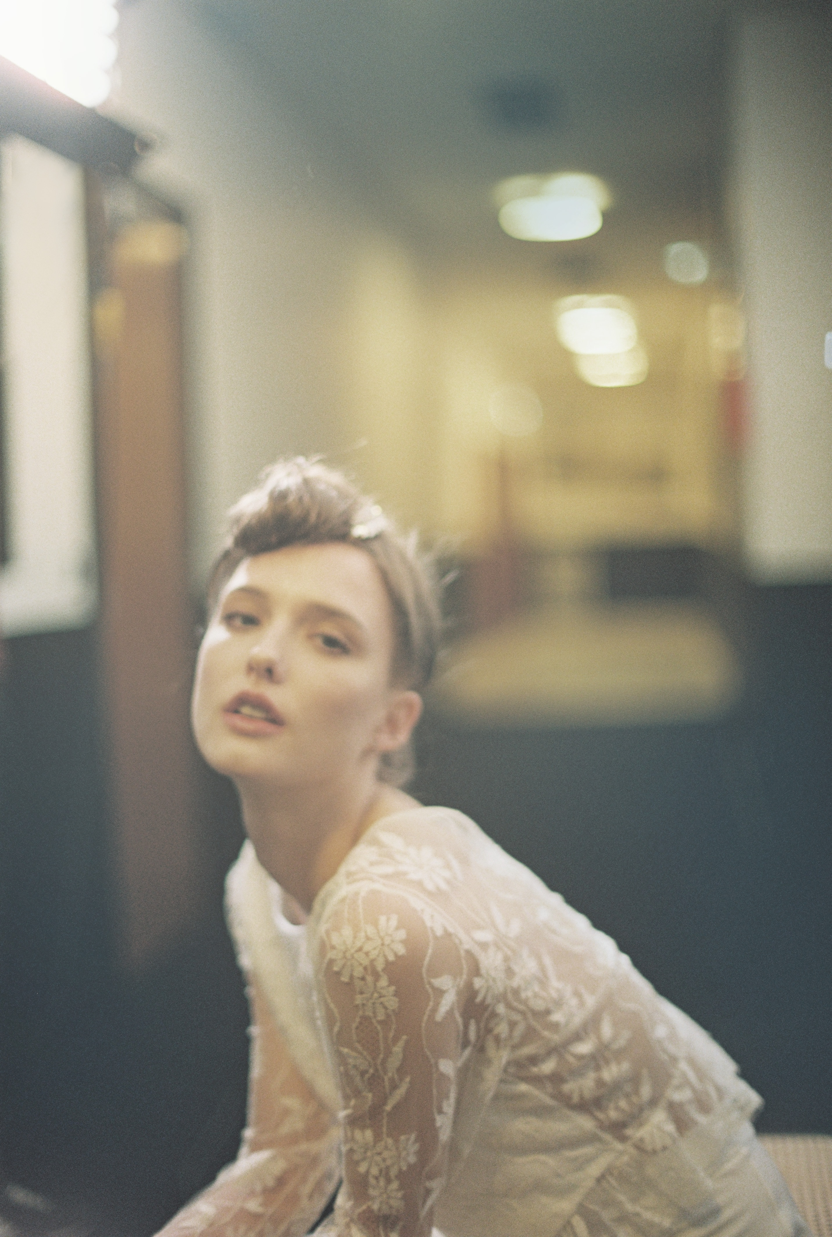 French Calais lace en silk crêpe wedding top.