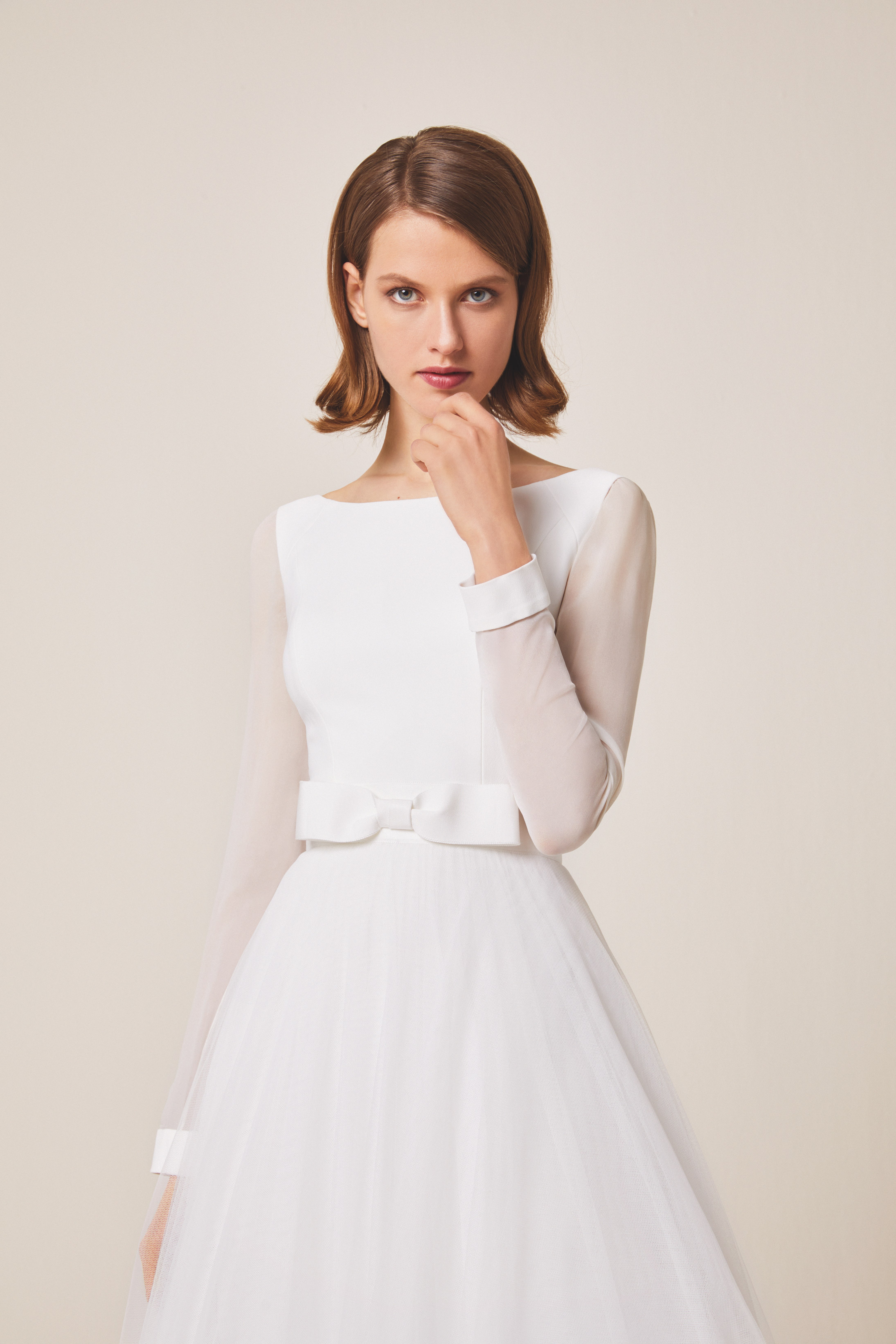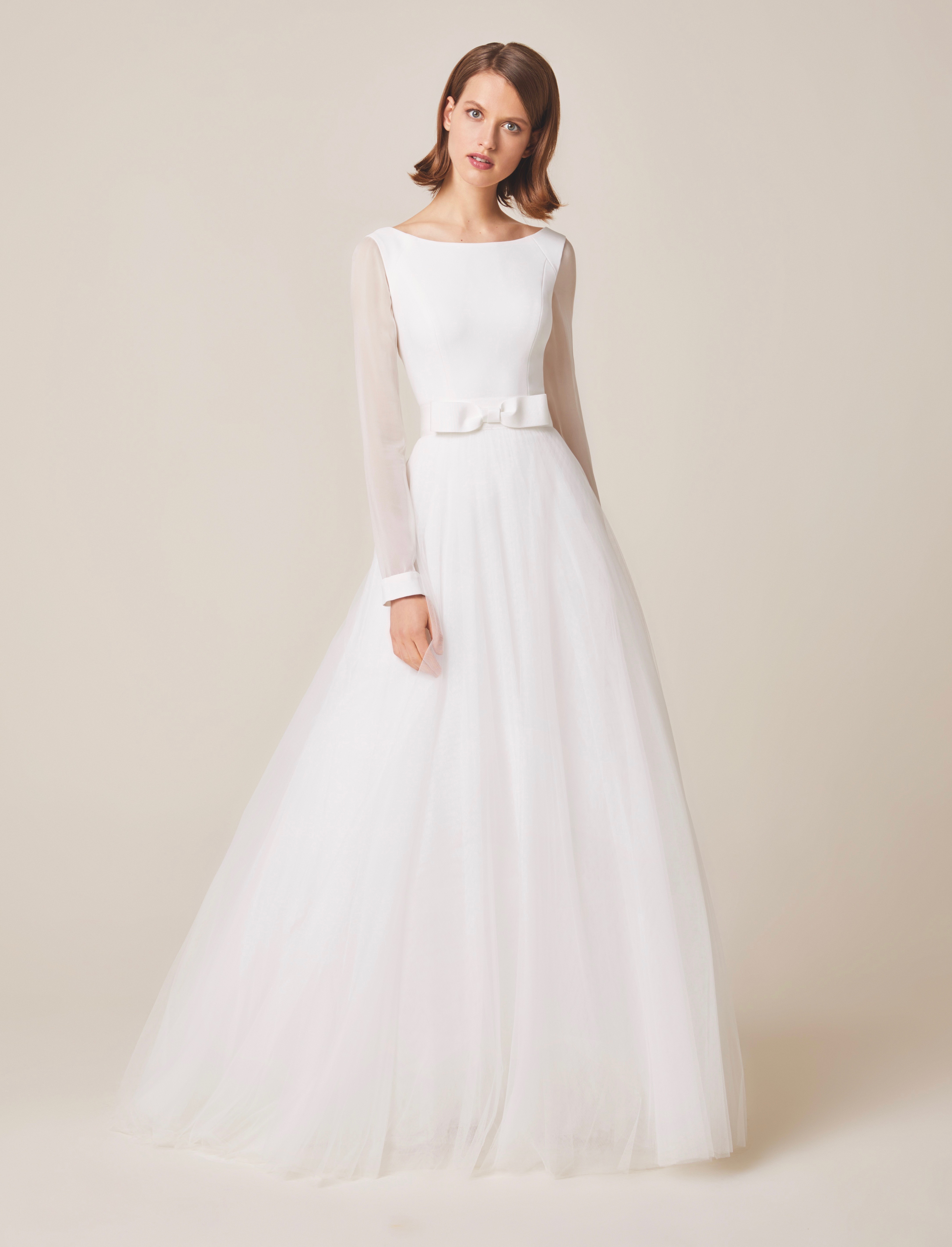 Crepe top with mussole sleeves and lining layer with tulle skirt (separates)