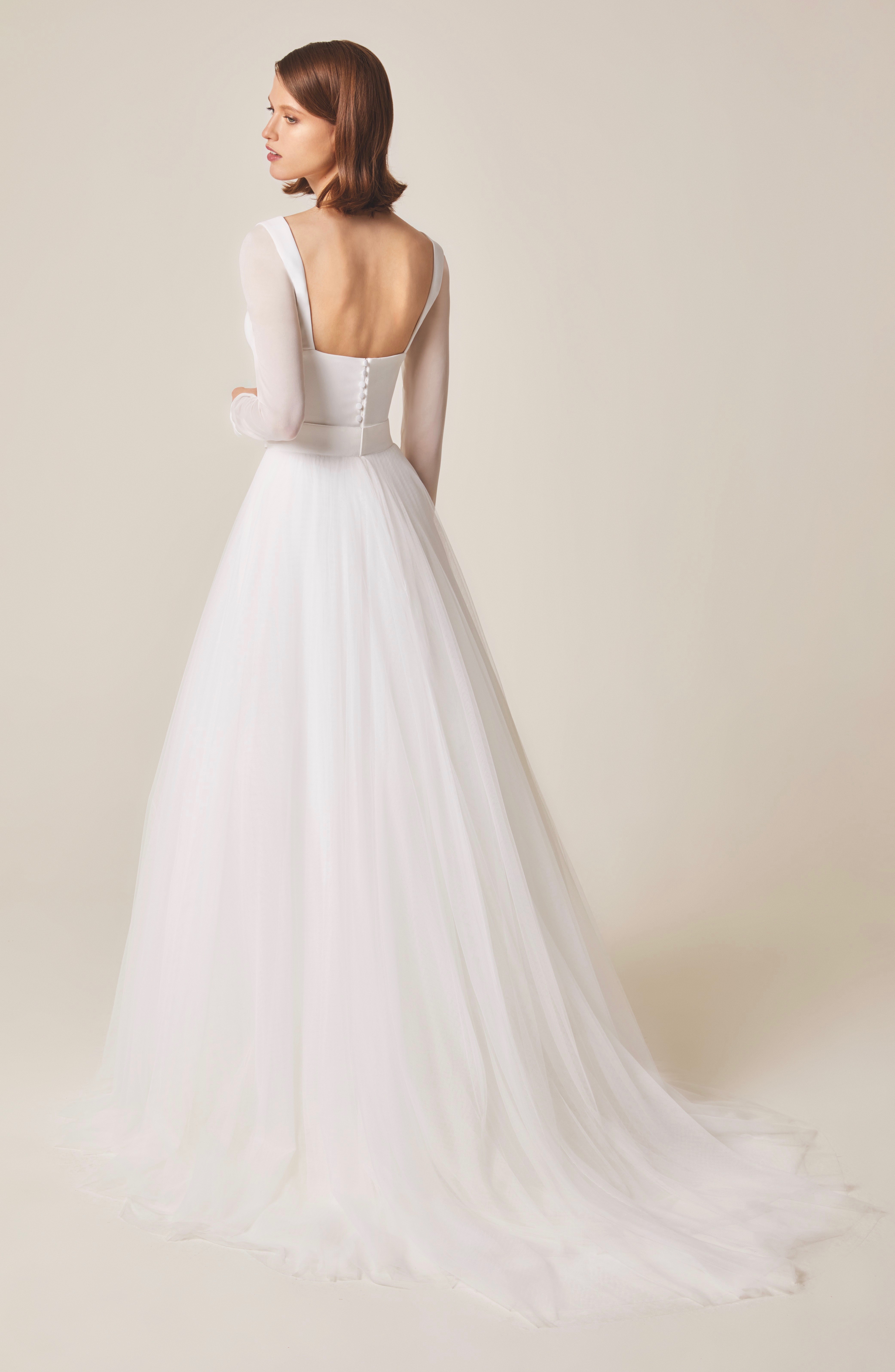 TOP SKIRT TWO PIECE A-LINE HIGH-NECK LONG SLEEVES TULLE CREPE BACKLESS