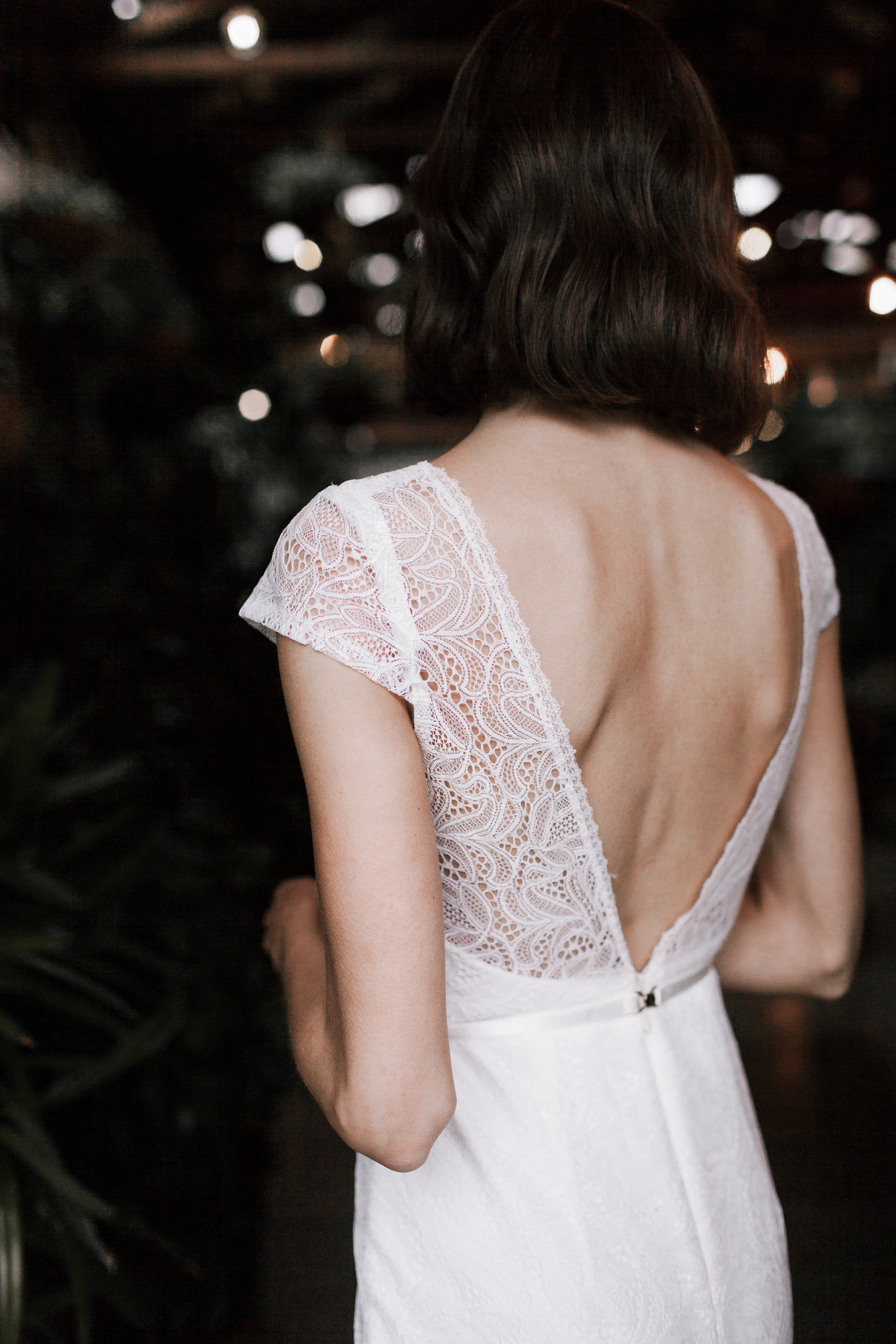 Think of Jemma as the WILD HEARTS Karina gown’s little sister. Featuring the same statement U-neckline base bodice and lace overlay, Jemma is finished with cap sleeves and a centre back godet for a dramatic train. Beautiful styled with the detachable Diamond Trains, as pictured.