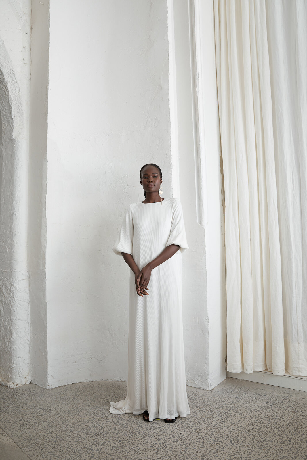 DRESSHIGH-NECKWHITEAVAILABLE IN CURVECIVIL CEREMONYRELAXEDMINIMALCOMFORTCAP/HALF SLEEVE