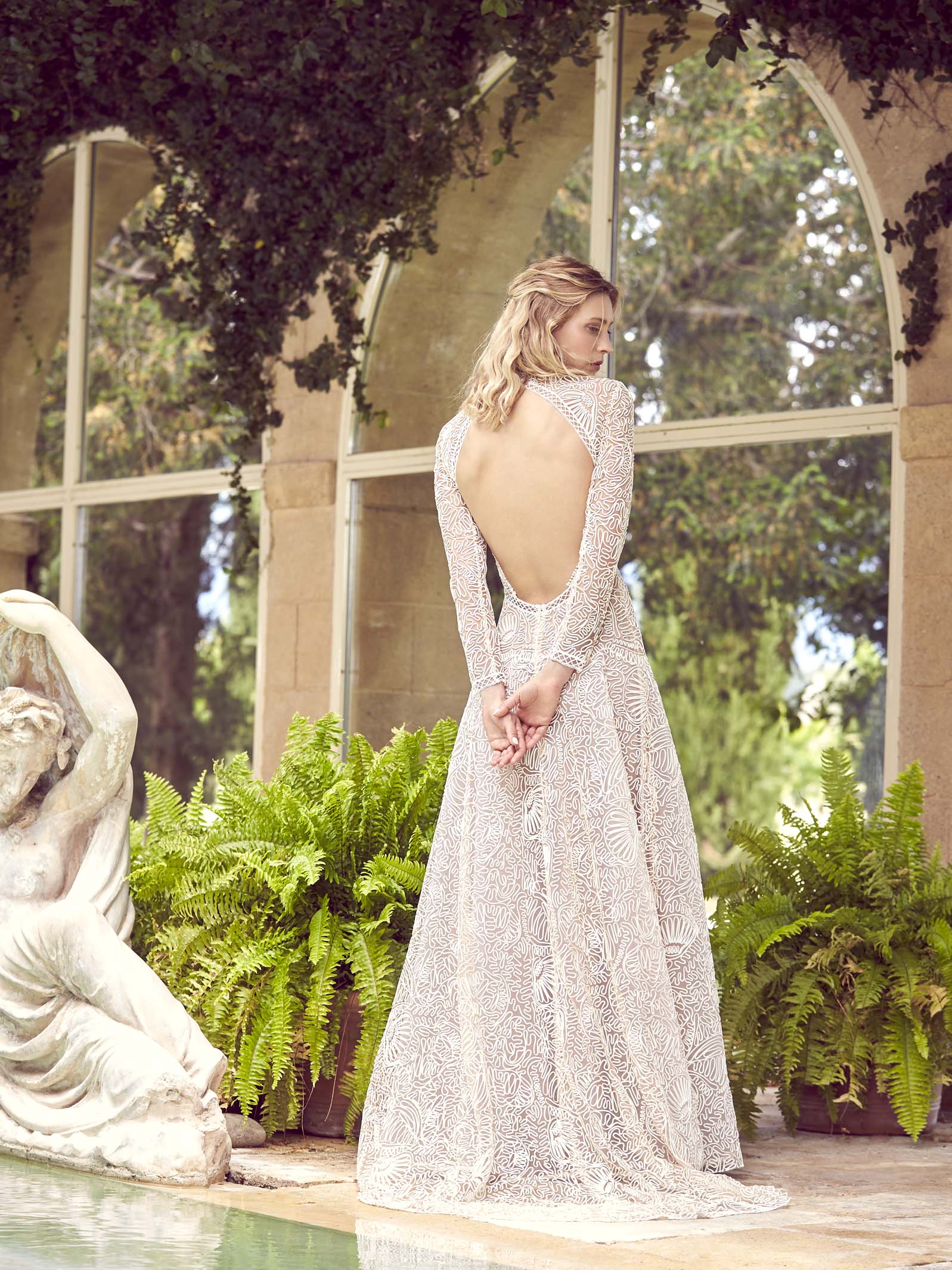 The iconic dress in the Collection with « seashell » embroidered tulle, Ortigia shakes up convention.