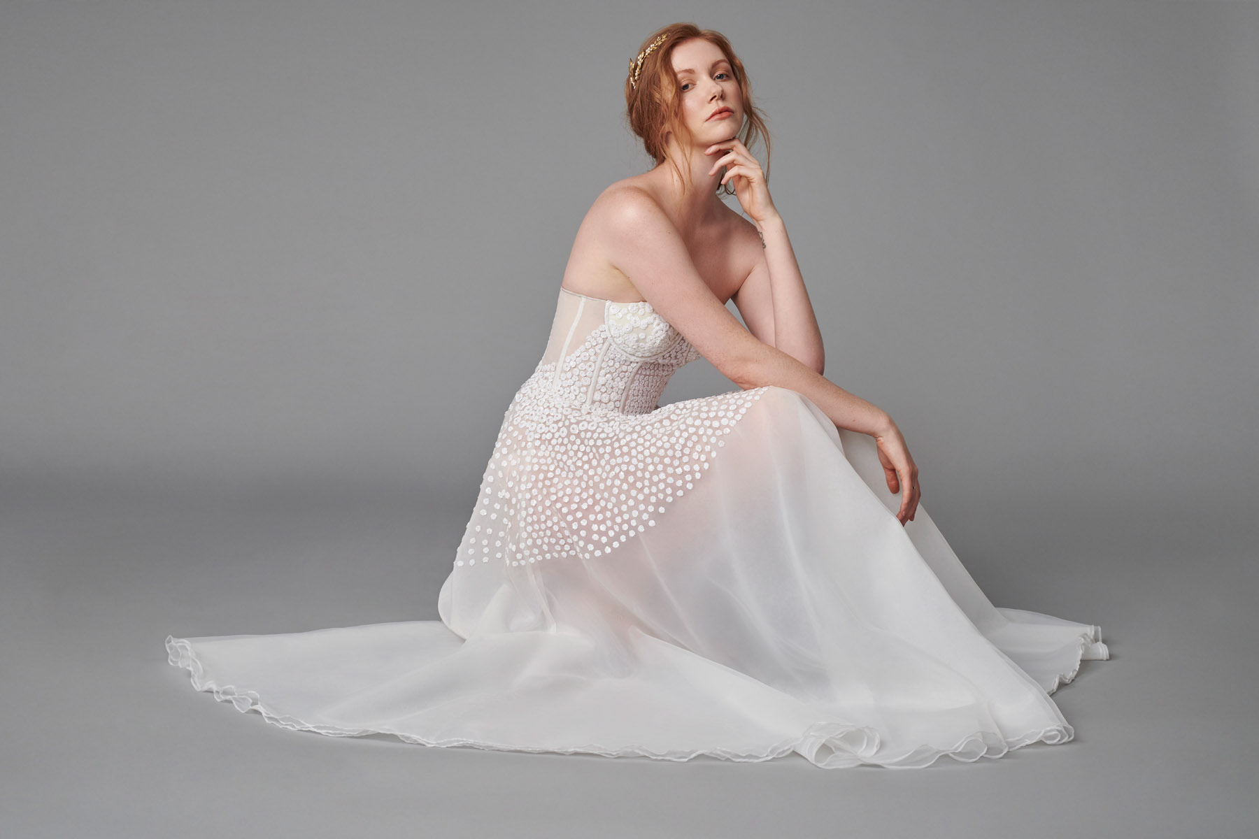 Working from her West London studio, she loves to collaborate with clients to create one-of-a-kind bridal dresses and separates, as well as pouring her creative soul into her collections, which are available to purchase from leading bridal shops in London