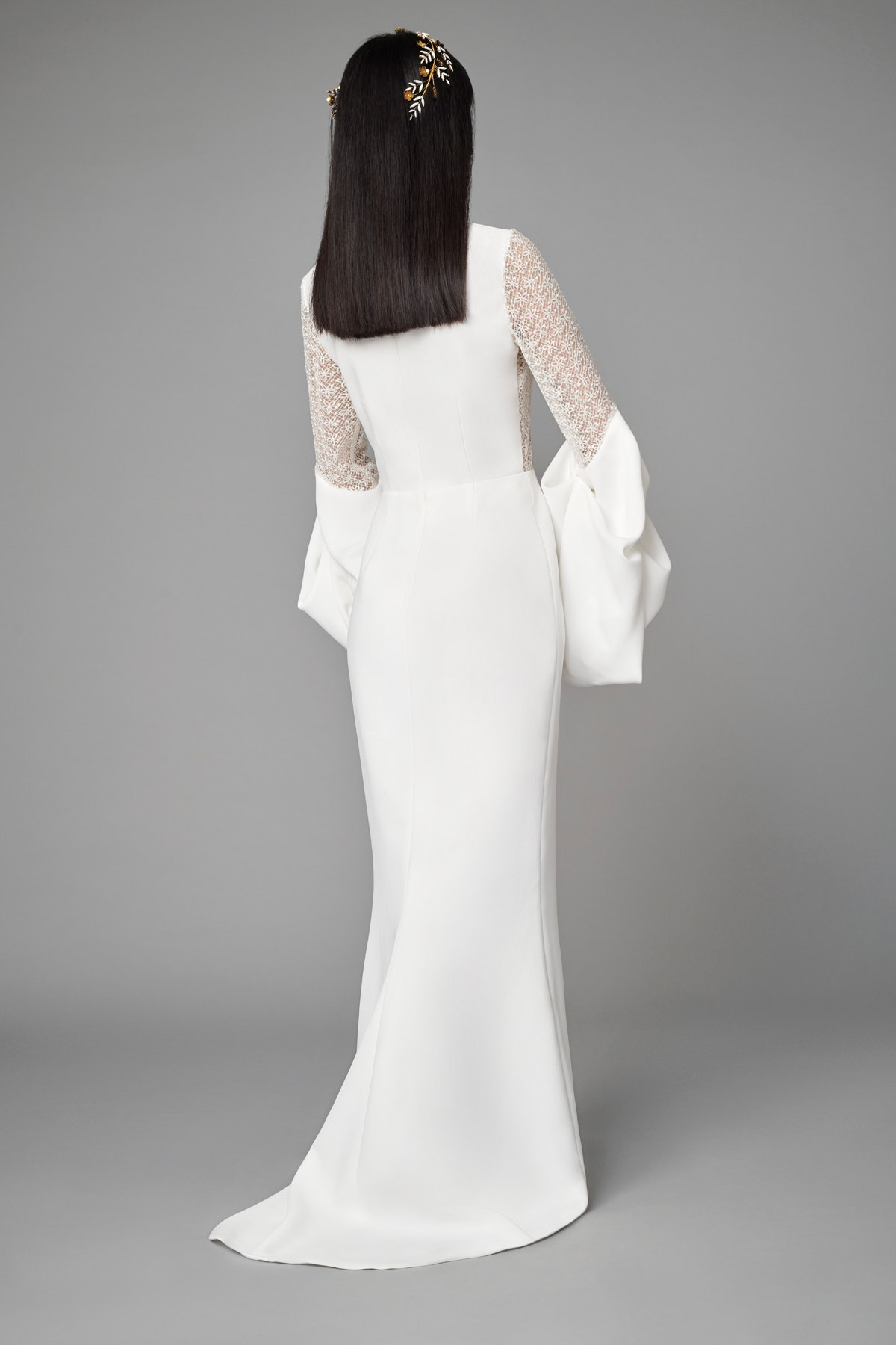 DRESS LONG SLEEVES HIGH-NECK WHITE COLUMN SUSTAINABLE TEXTILES