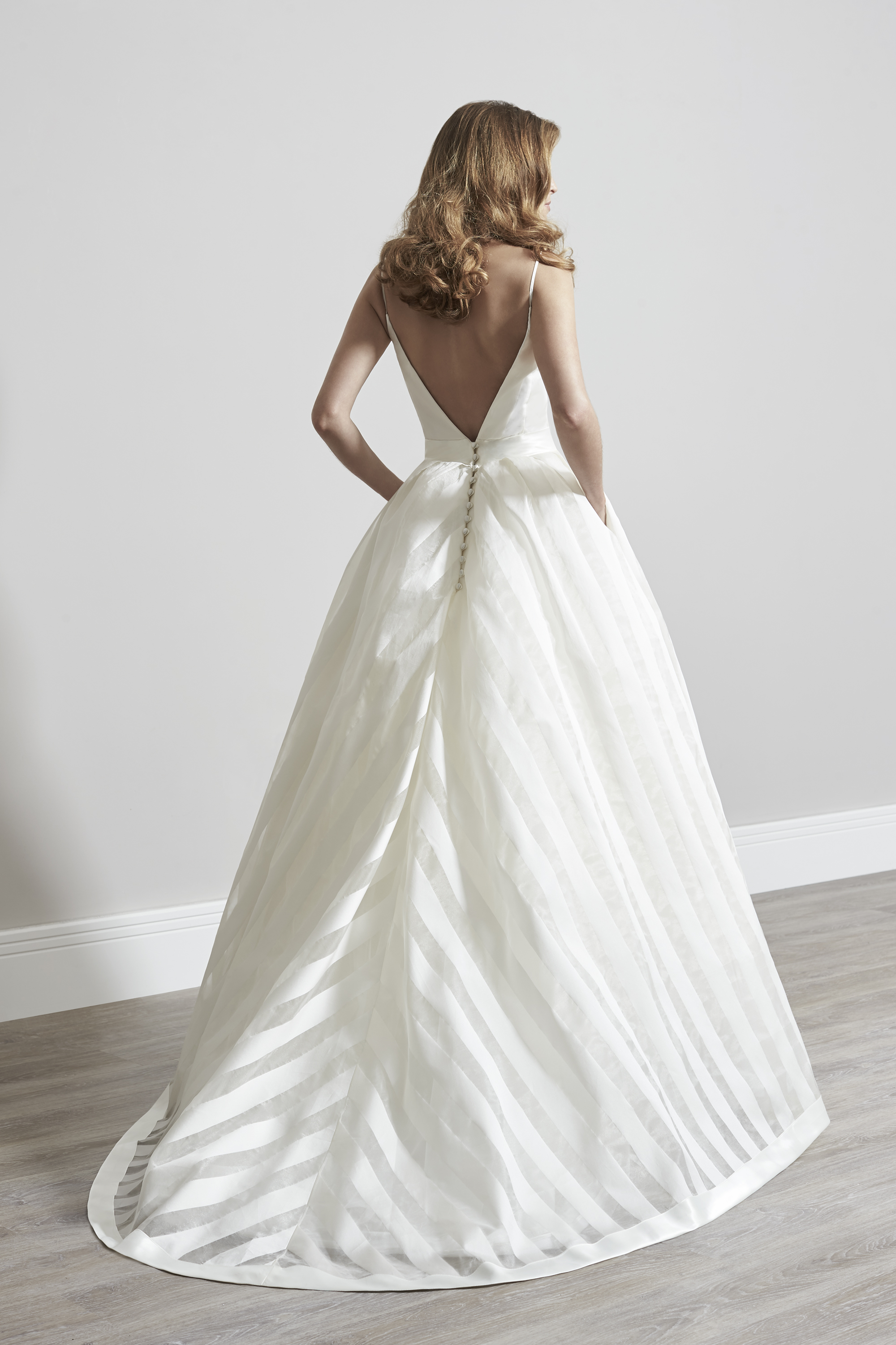 Lydia is the ultimate ballgown in satin and organza stripe.