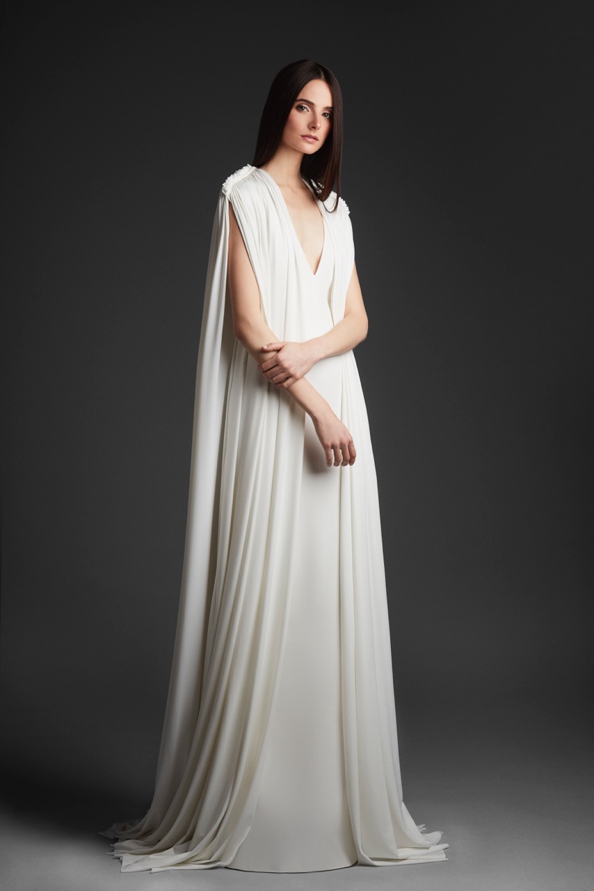 DRESS V-NECK A-LINE TWO PIECE CAPE/JACKET/COVER-UP BACKLESS IVORY CREPE