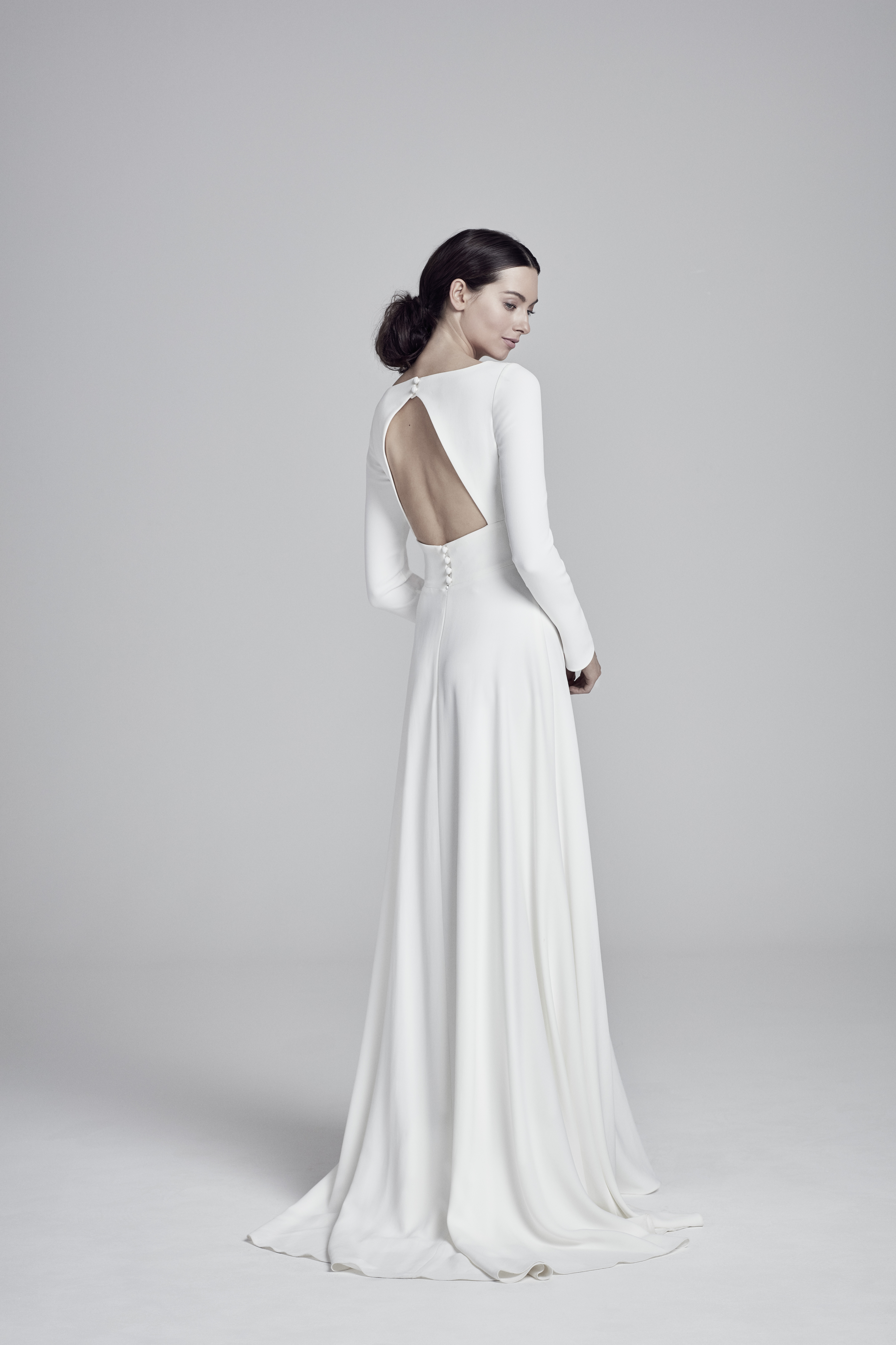 DRESSA-LINELONG SLEEVESIVORYCREPEHIGH-NECKAVAILABLE IN CURVE