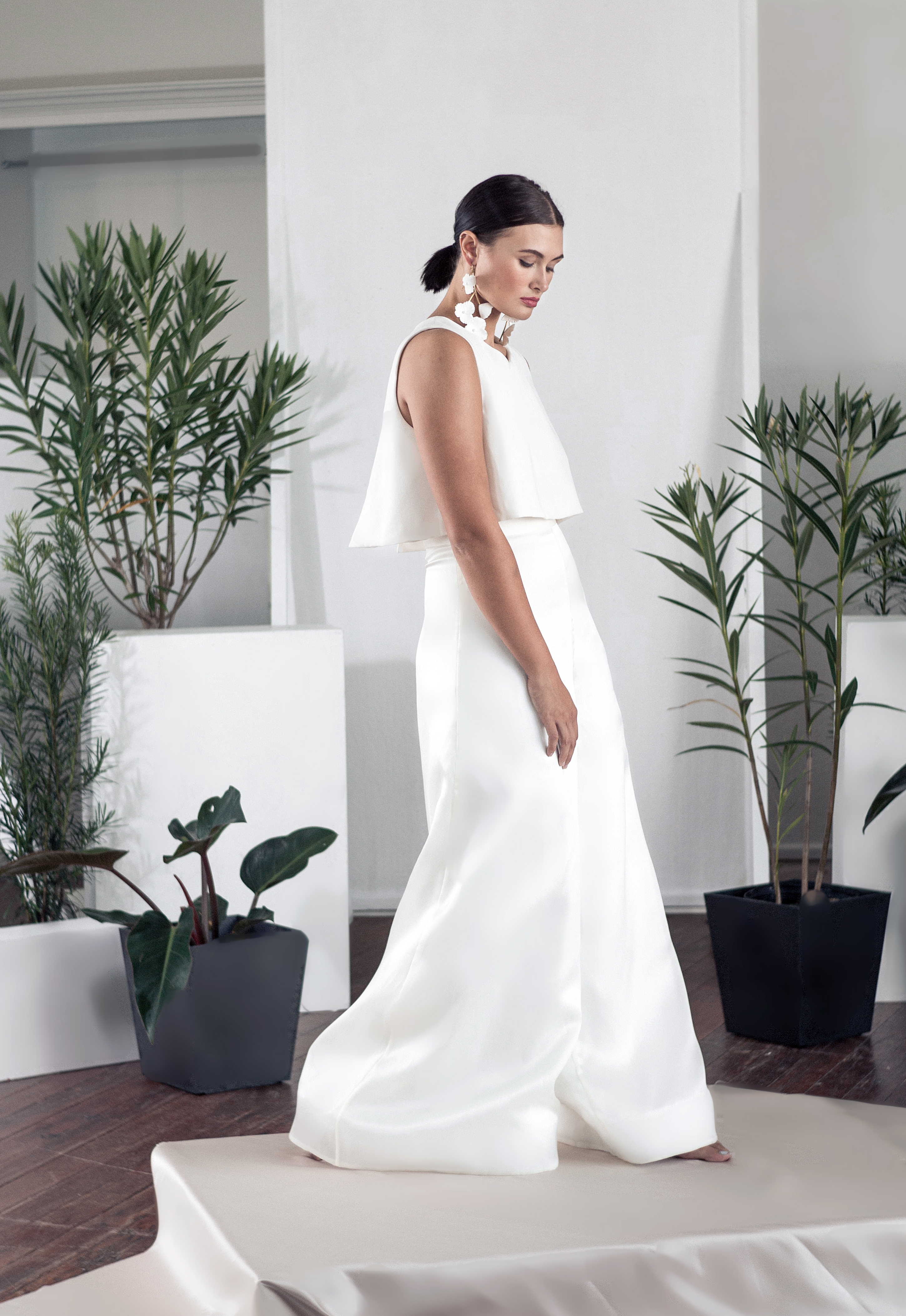 TOPTWO PIECEMINIMALTRAINHIGH-NECKLACESILKWHITEOFF WHITEEMBROIDEREDCREPEAVAILABLE IN CURVECIVIL CEREMONYPARTYCOMFORT
