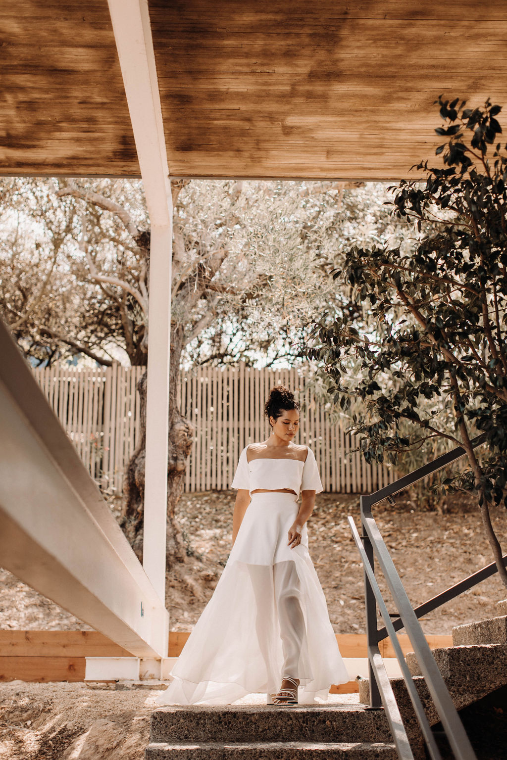 TOP SKIRT TWO PIECE SILK OFF WHITE CREPE RELAXED MINIMAL