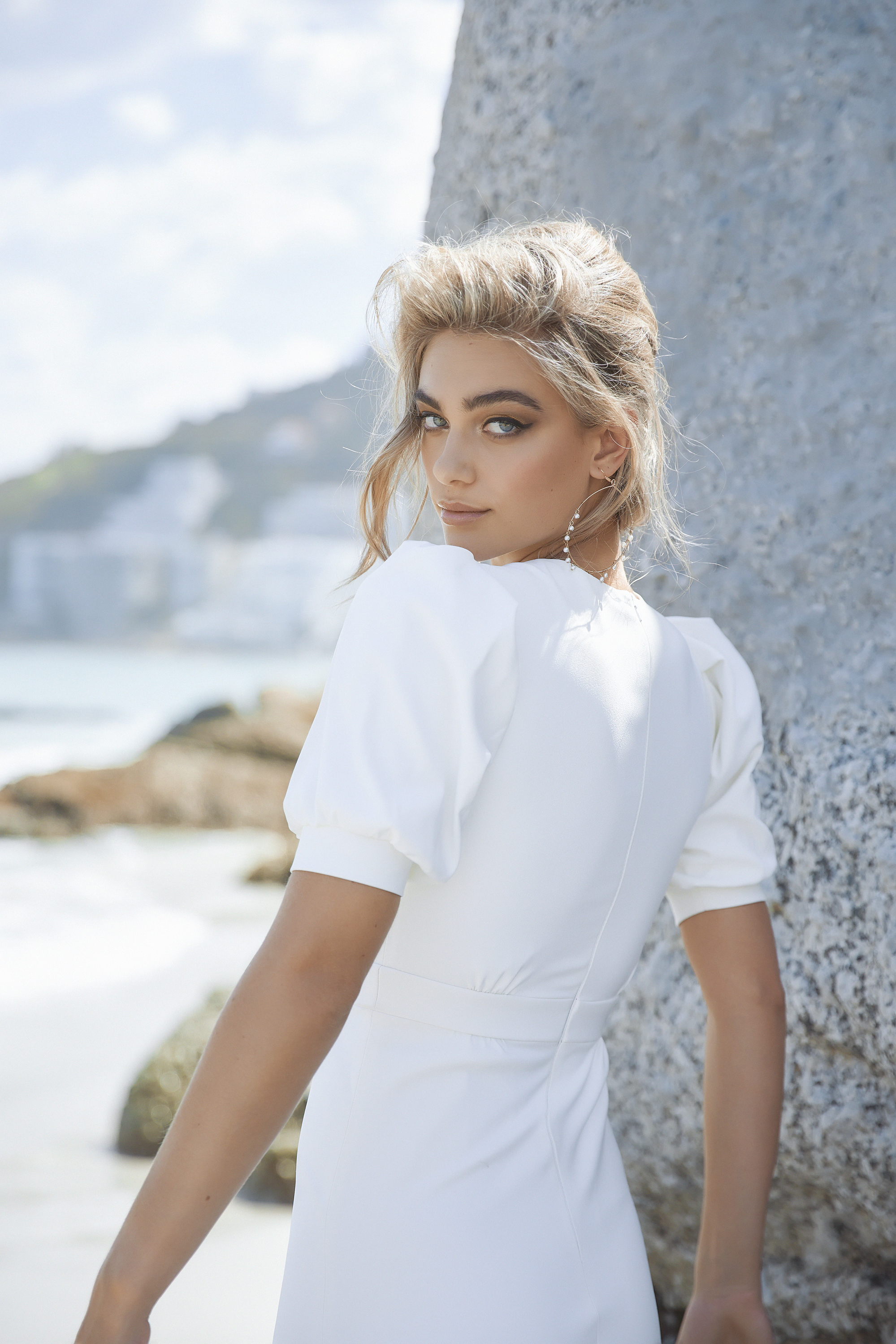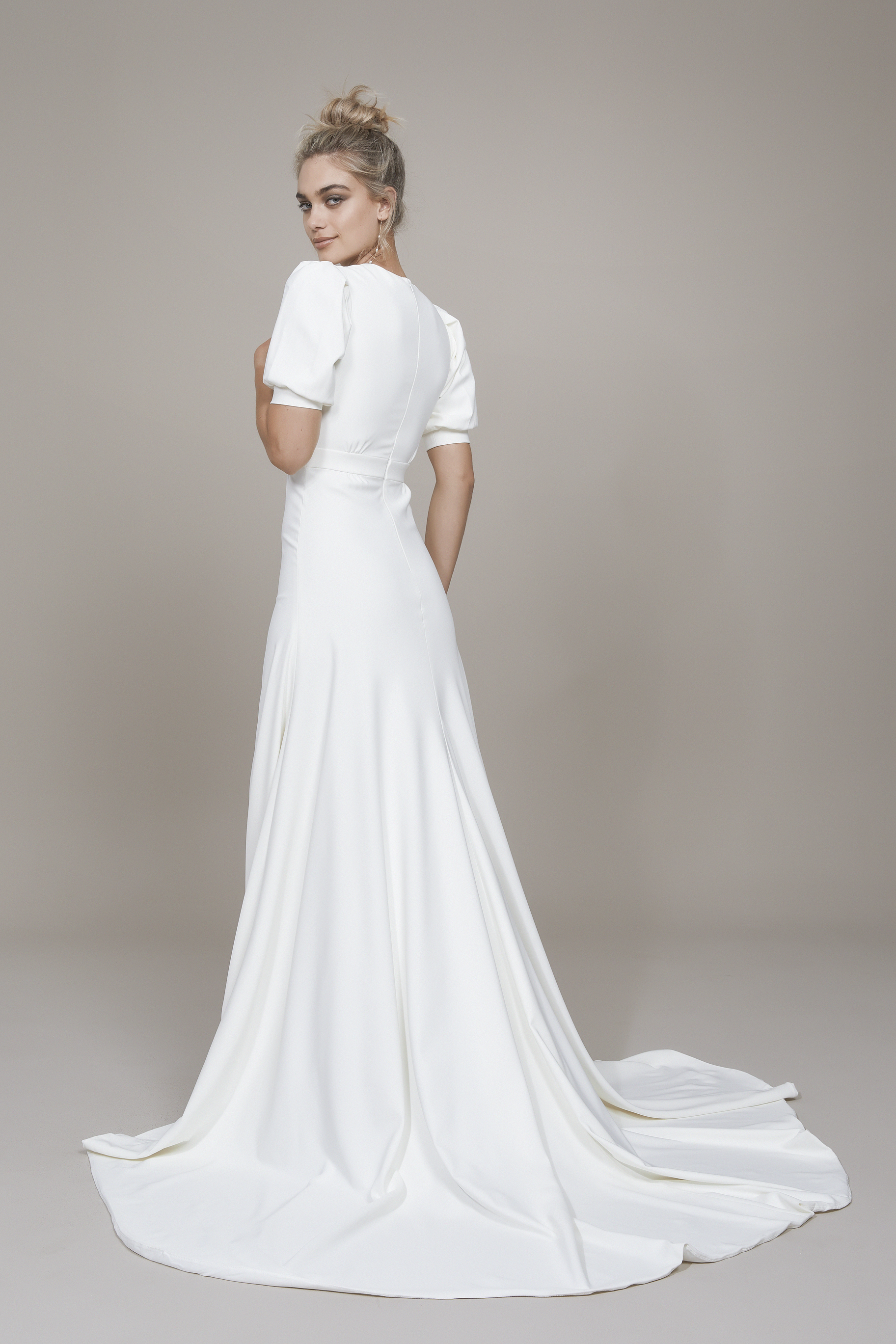 OFF WHITEDRESSJULIETTE SLEEVECREPEV-NECKCIVIL CEREMONYCOMFORTMINIMAL